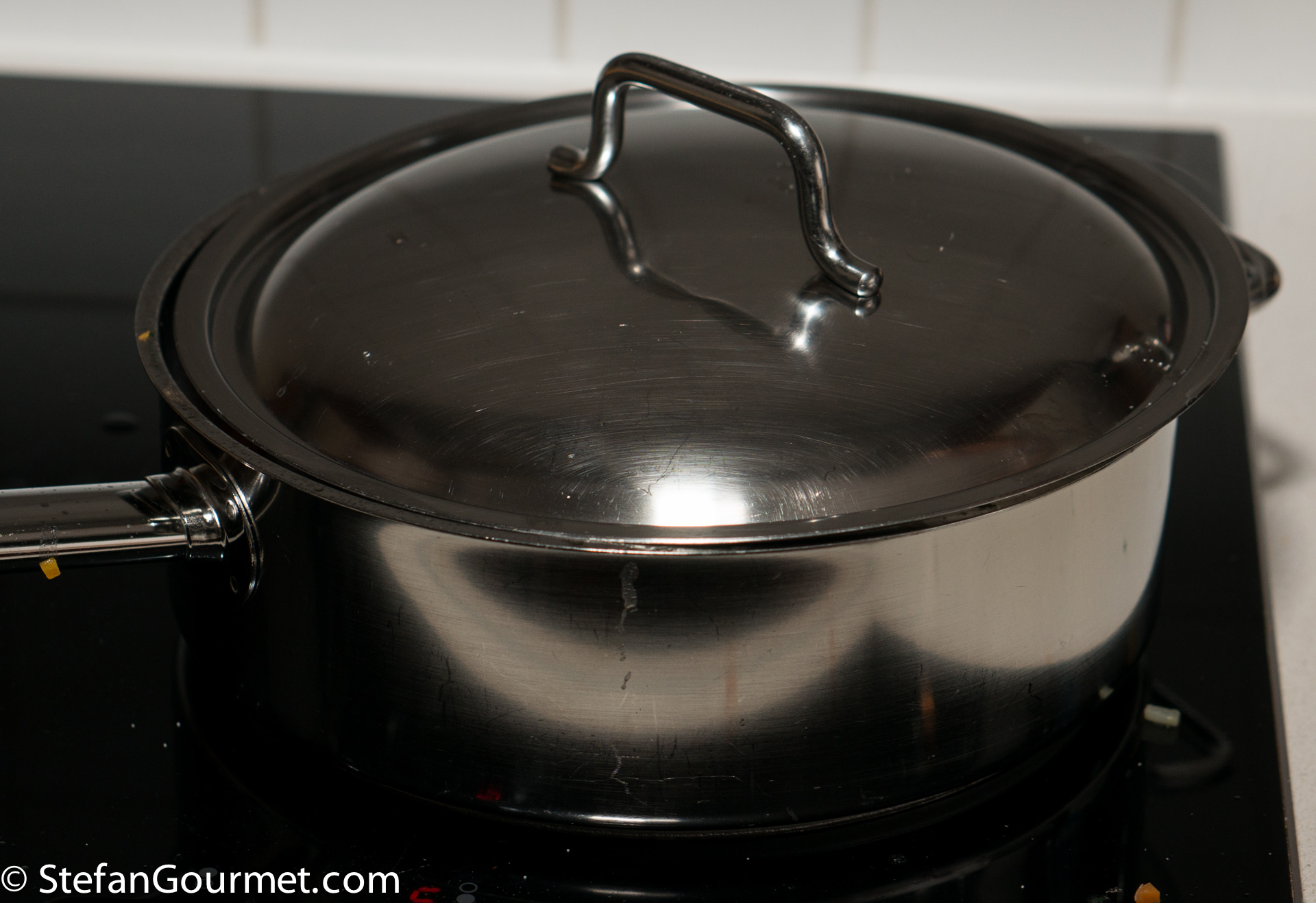…then lower the heat to a simmer. Cover with the lid slightly ajar, and simmer…
