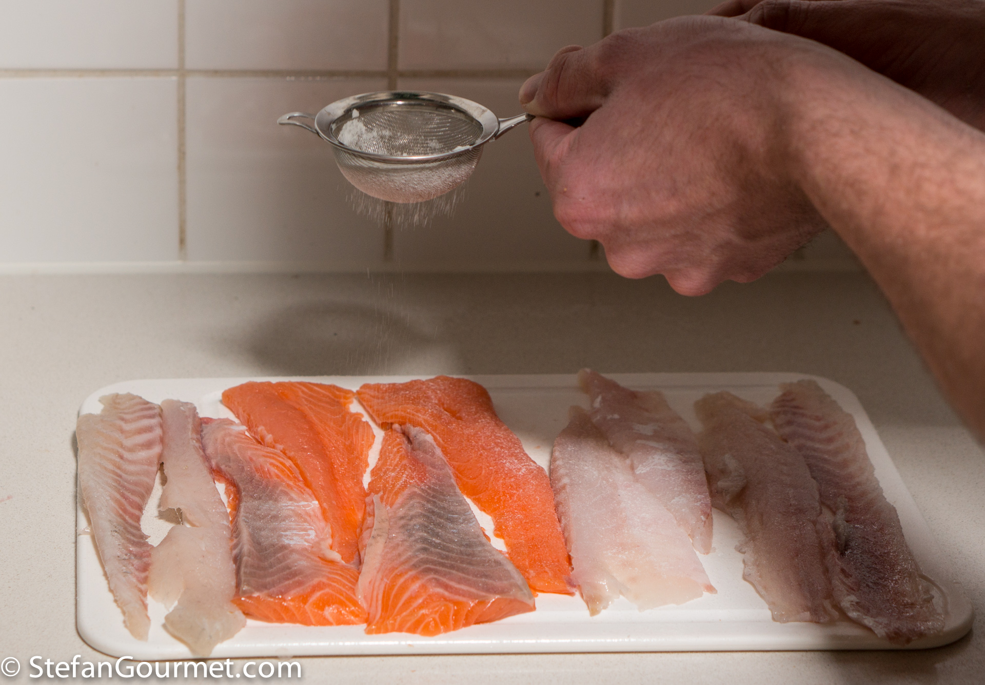 Then the fish was seasoned with salt and Activa powder was sprinkled on the fish…