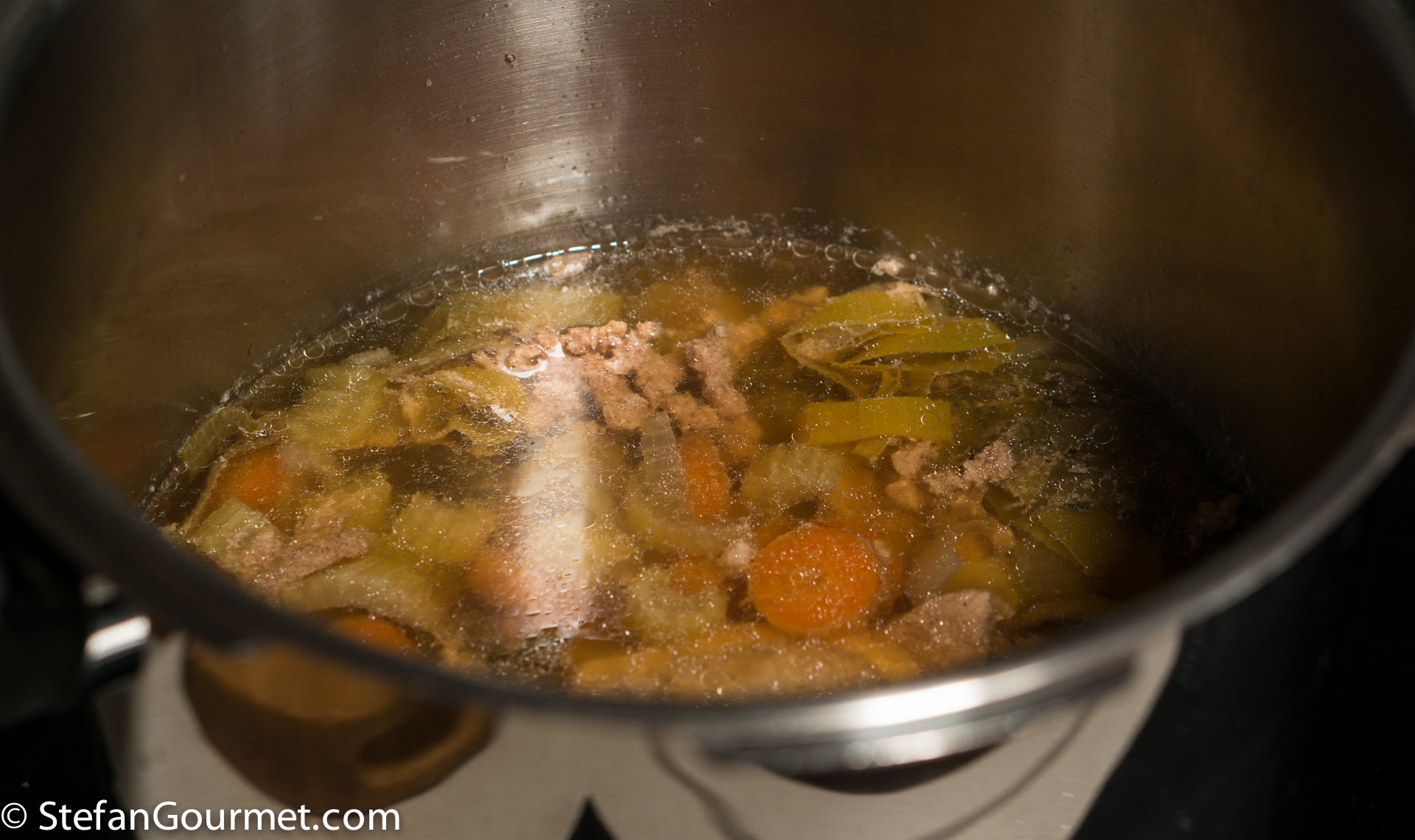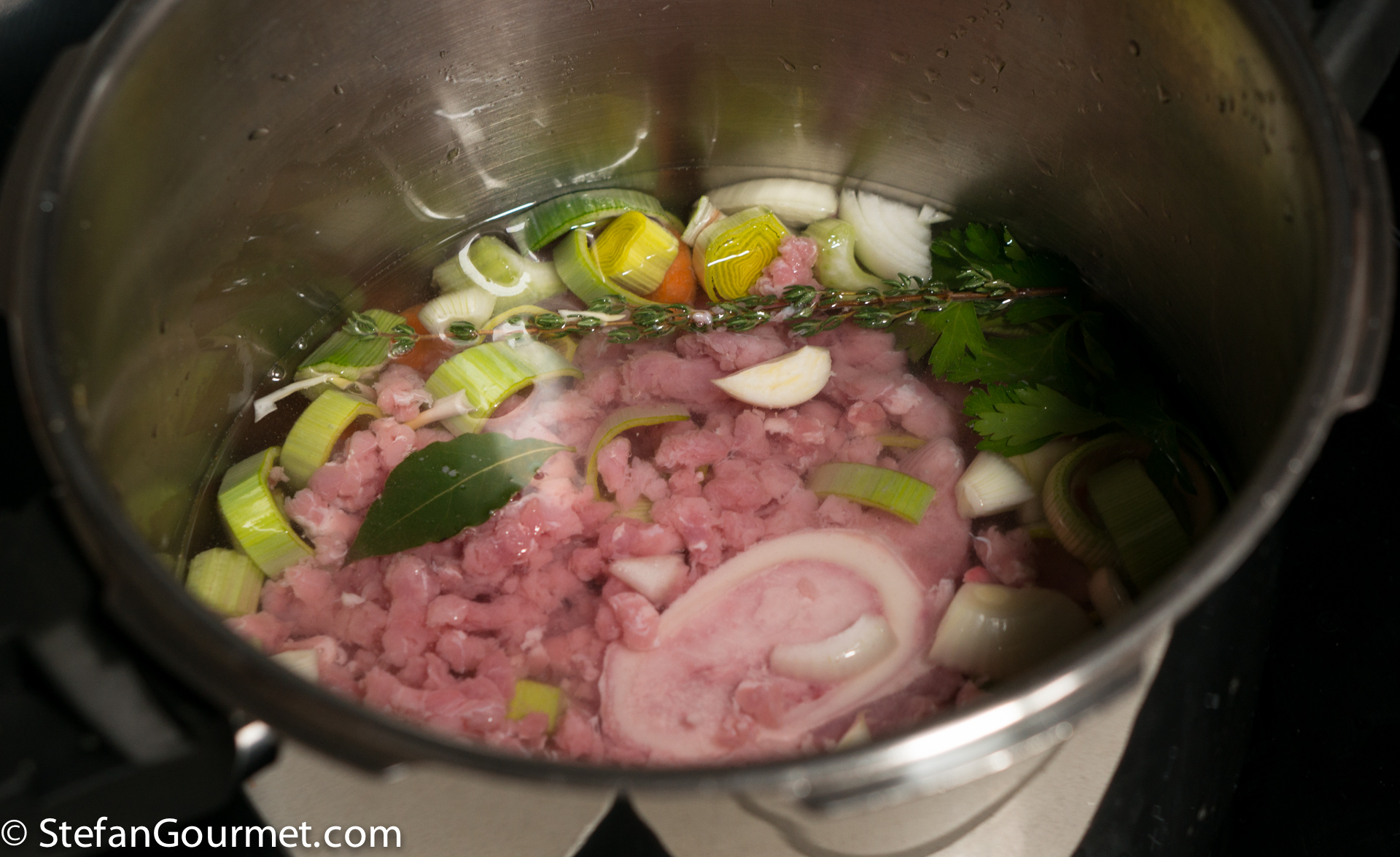 If you have meat grinder, grind the meat for the stock for better flavor extraction (optional).