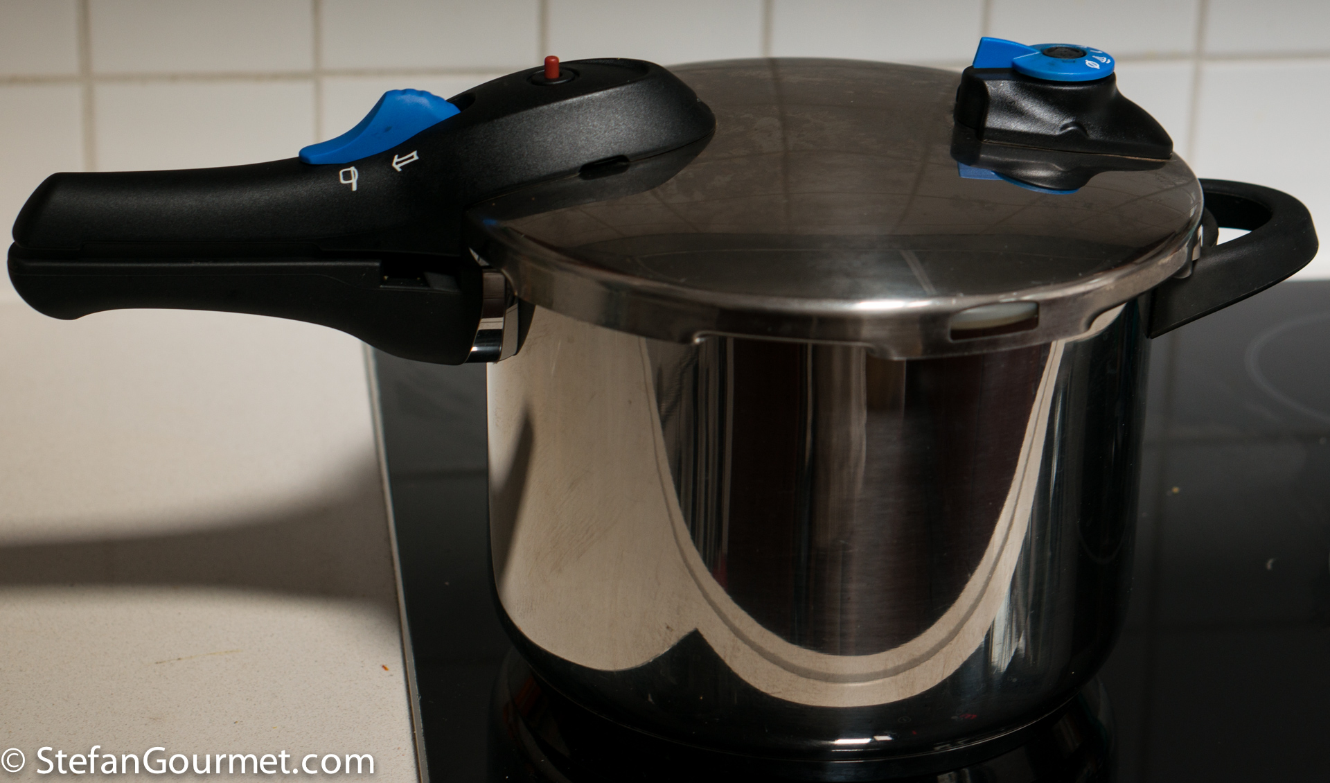 Bring to pressure and pressure cook for 2 hours, or bring to a boil, skim the scum off the surface, and simmer over low heat, covered, for 4 hours.