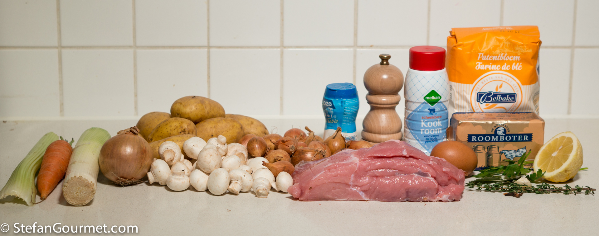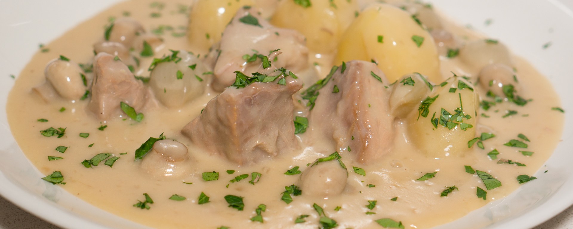 Blanc is French for white, and so everything but the parsley in this recipe is ‘white’: veal, mushrooms, pearl onions, white sauce, and cream. Nothing is browned to maintain the creamy flavor and light color. It is also served with something ‘white’: potatoes or rice. By cooking the veal sous-vide it’s incredibly tender and succulent, and it is easier as veal can easily become dry when cooked the traditional way.