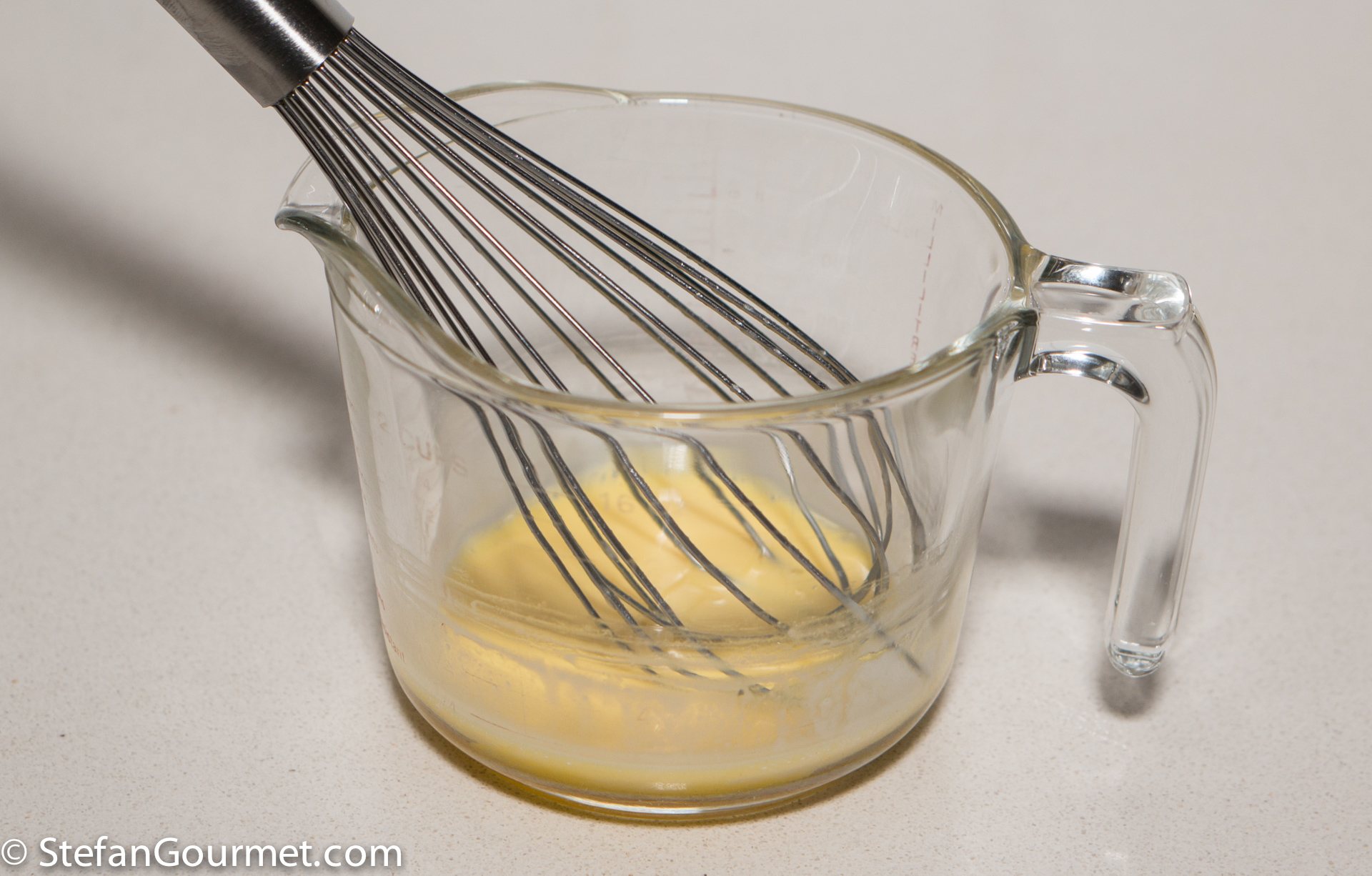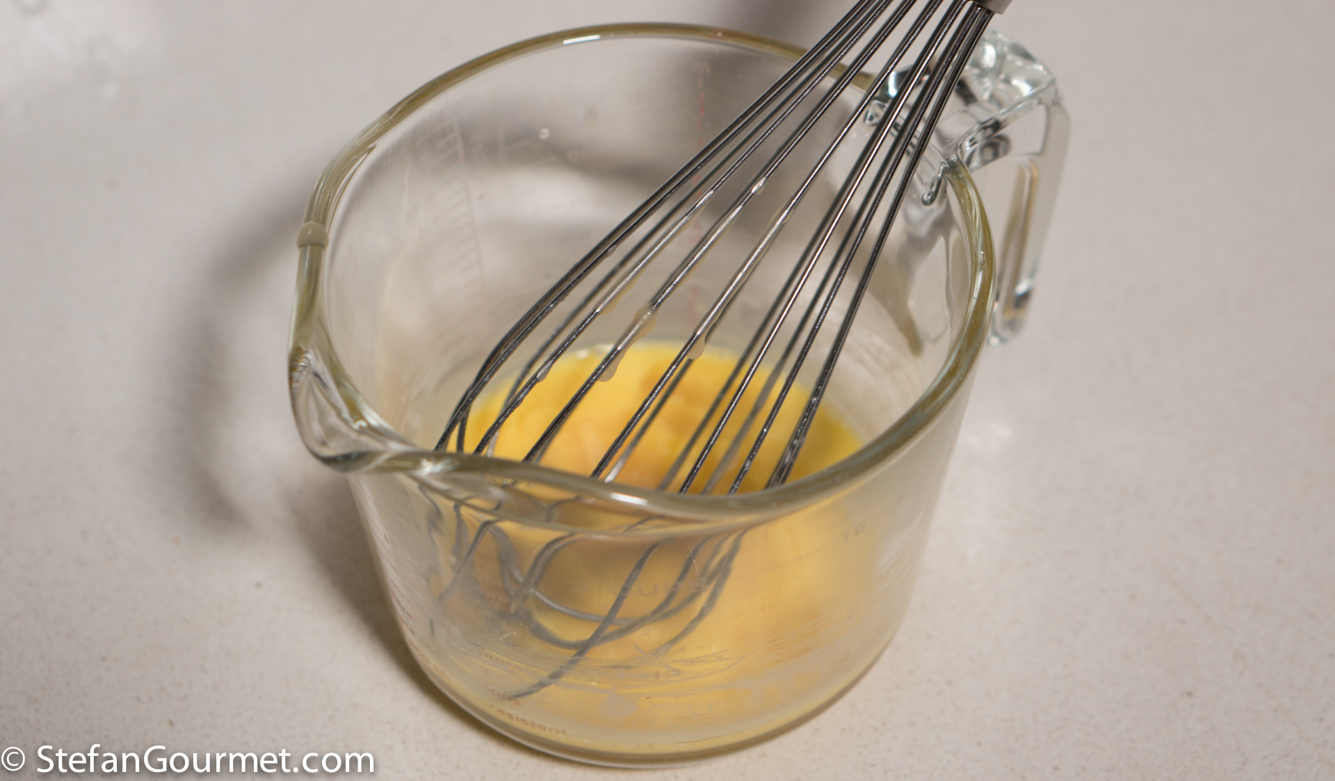 Add a couple of tablespoons of the sauce and whisk to temper the egg yolk.