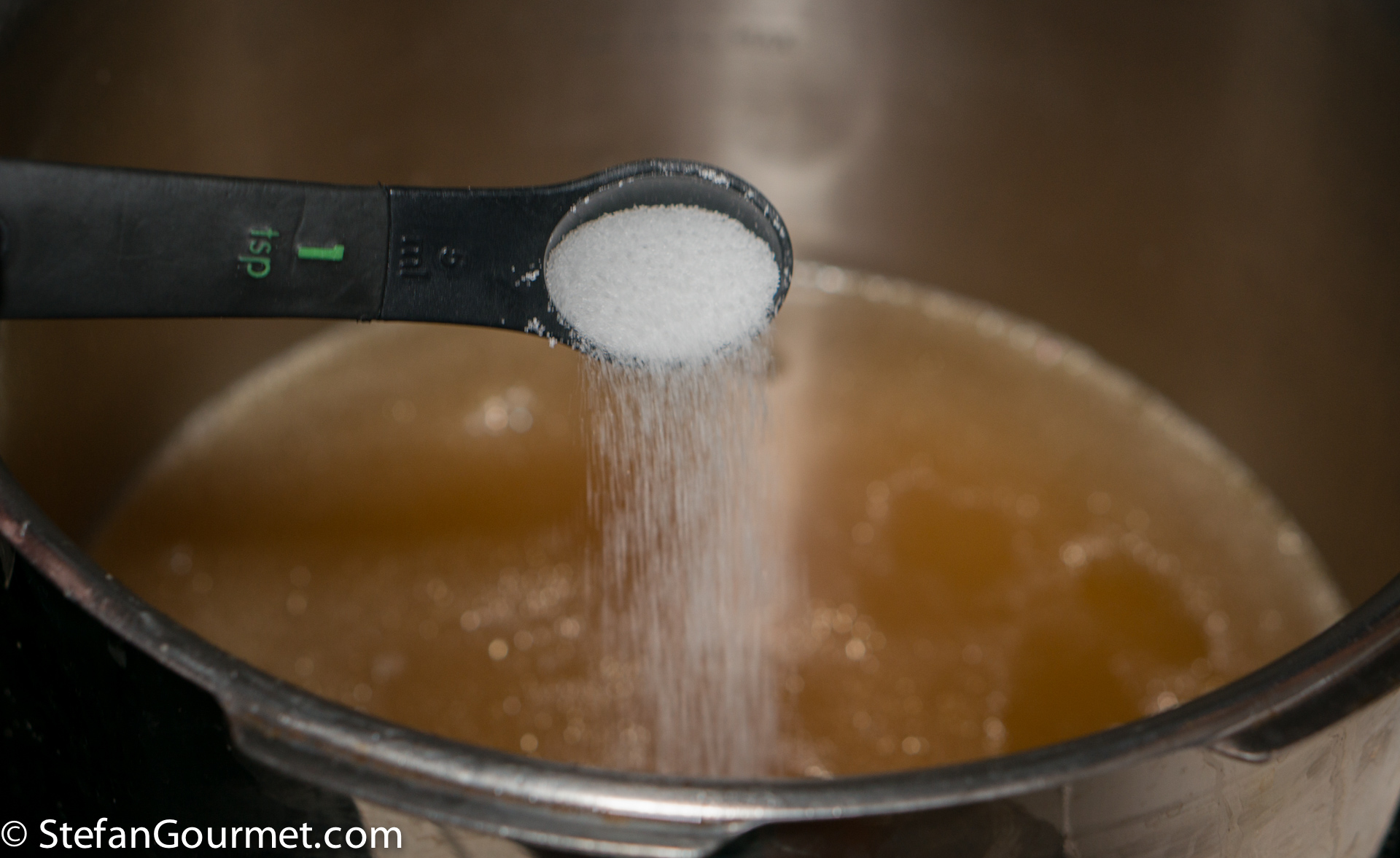 Put the chicken broth in a stock pot and season with salt to taste; I used about a teaspoon.