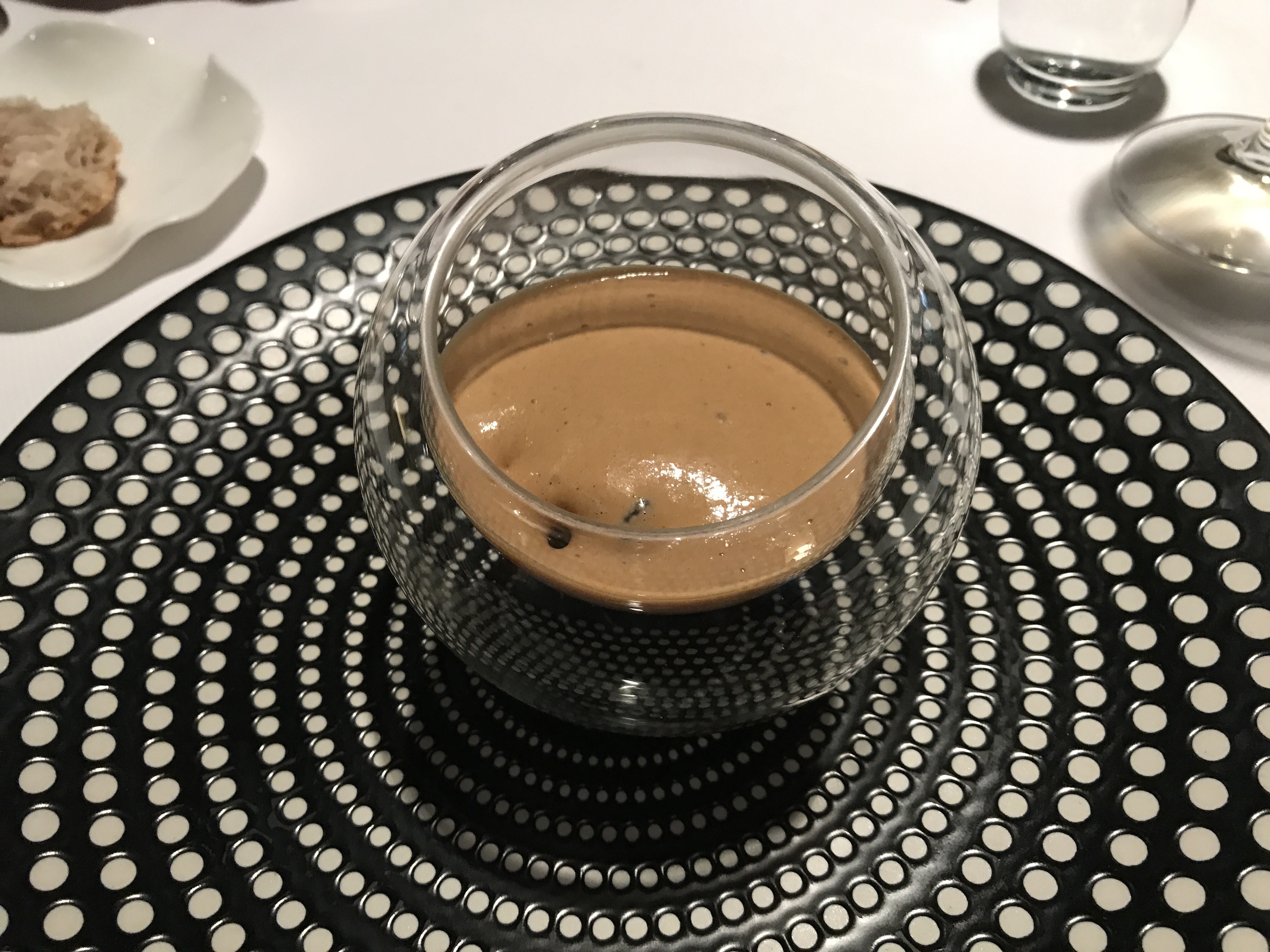 In the dining room the old cogwheels are still there, which makes for a very nice ambiance. We opted for the chef’s ‘surprise’ 8- course menu (105 euros), which was not as surprising because it contained mostly the same dishes as the 5-course menu for 75 euros. The wine list only has French wines, and of course mostly from Burgundy with an impressive selection of Côte d’Or wines.