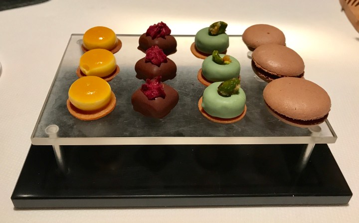 I’ve had a fake apple for dessert before, but this “Granny Smith apple” was even better because it was not only made of sugar but had actual green apple flavor. Inside was a very nice mousse and there was some crumble as well. 9/10