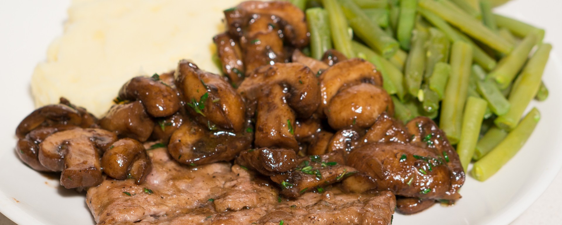 Serve the scaloppine with the mushrooms on preheated plates. I served mashed potatoes and green beans on the side.