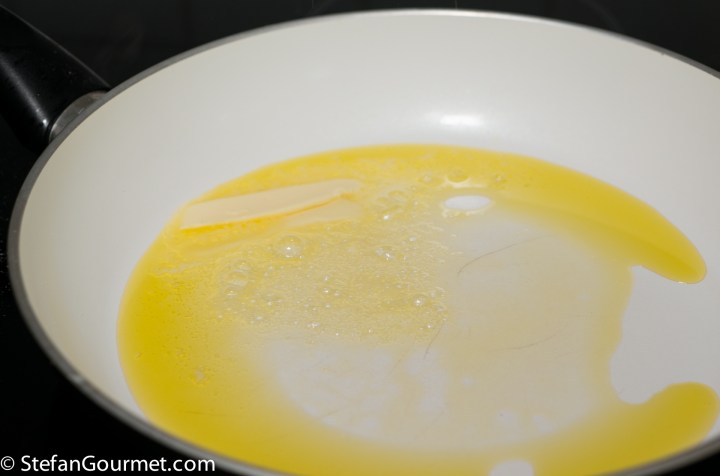 Heat 3 Tbsp olive oil and 3 Tbsp butter in a frying pan.