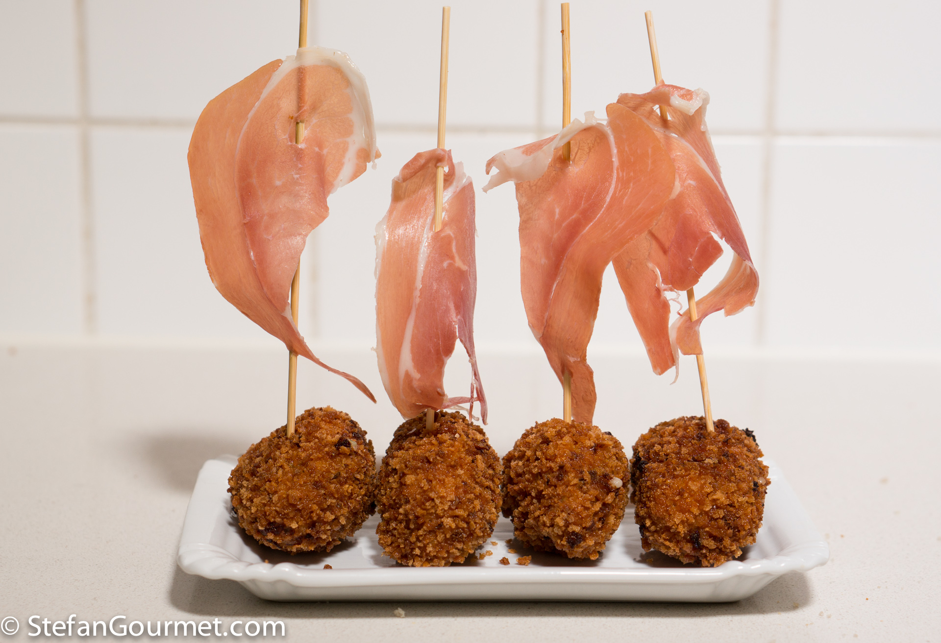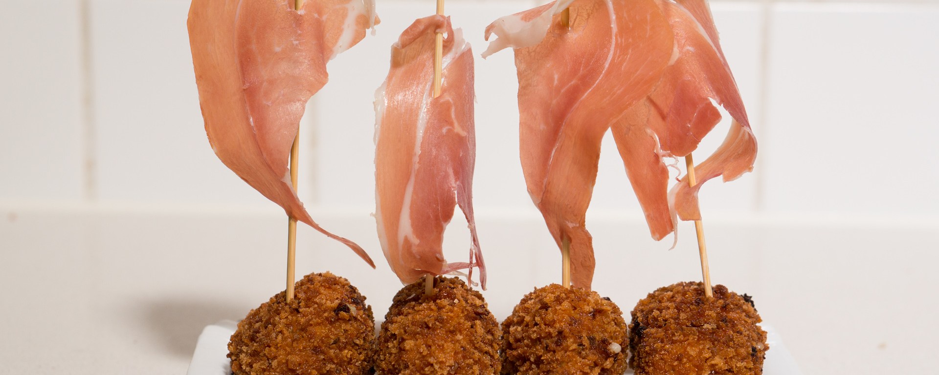 At tapas bars in Spain the croquettes are often displayed and served with a ‘sail’ of ham.