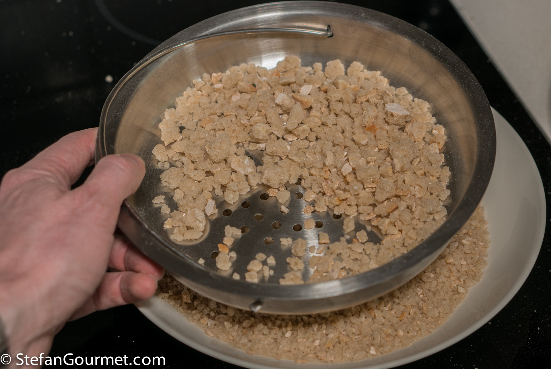 Then use a coarse sieve to obtain coarse breadcrumbs.