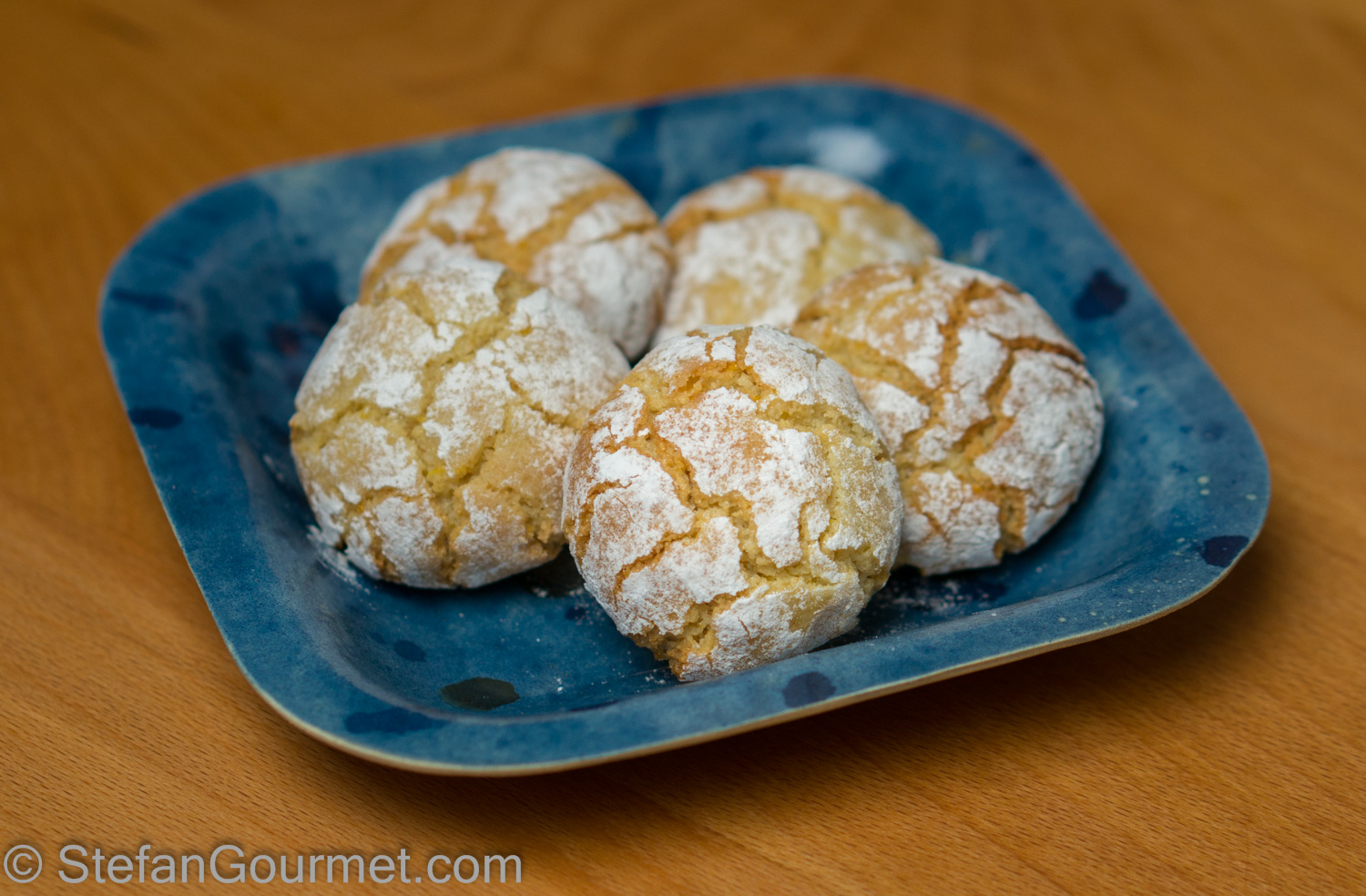 Don’t these Italian cookies look amazing? The best thing is that the nice ‘tiger’ pattern appears by itself. They are called acetani and have a wonderful flavor of almond and orange.