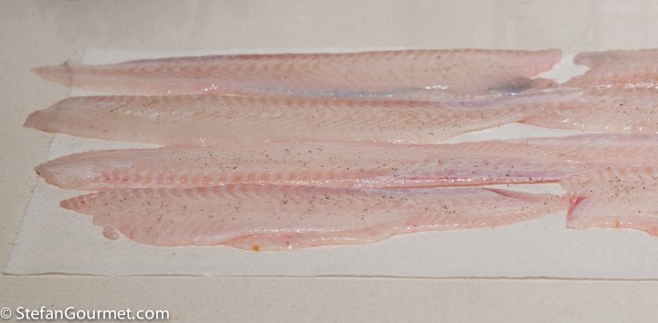450 grams (1 lb) sole fillets (from 2 soles of 450 grams/1 lb each; each sole yields 4 fillets)