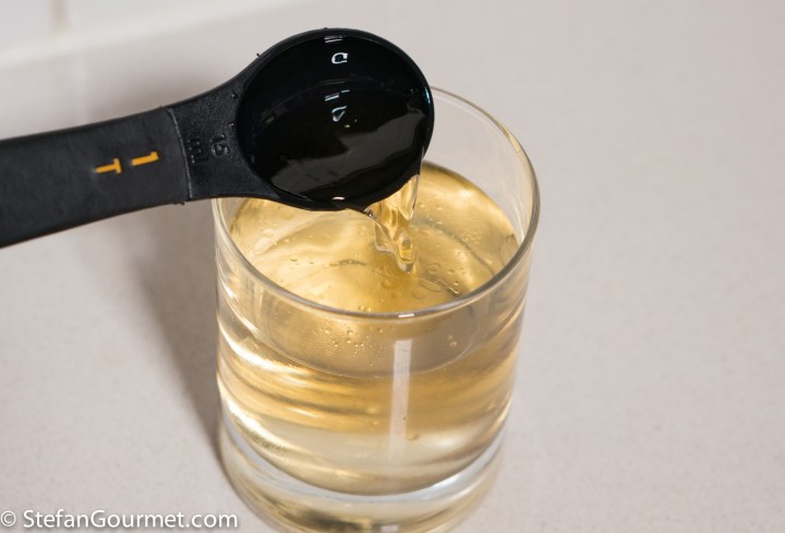 Combine 250 ml (1 cup) of dry white wine with 2 tablespoons of white wine vinegar.