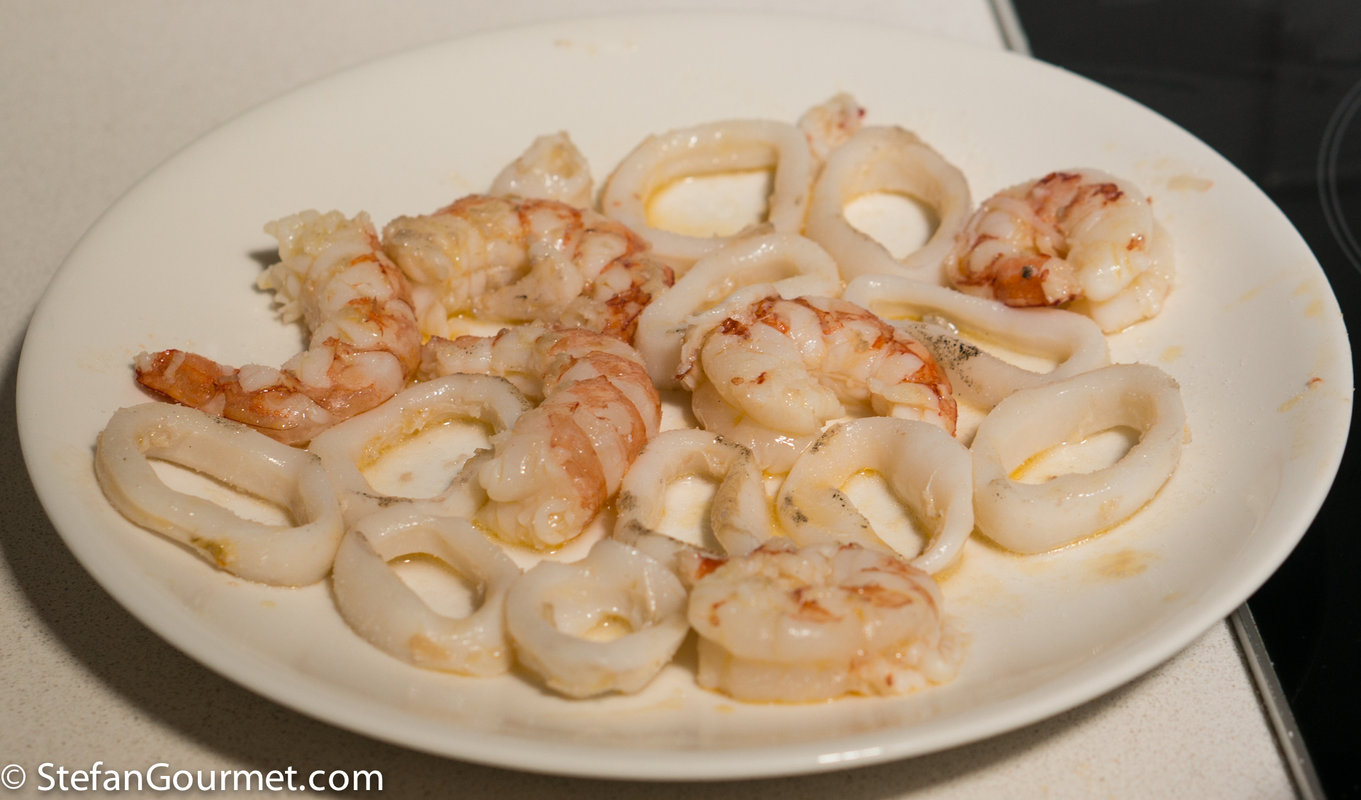…and the squid and mussels that were taken out of their shells (together with any juices on the plate).