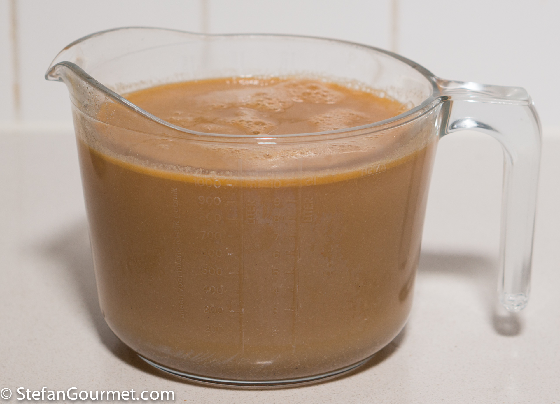 If all went well, you should now have 1 litre (4 cups) of stock. If you have too much, simmer it to reduce it to 1 litre. If you have too little, add some water or chicken stock.