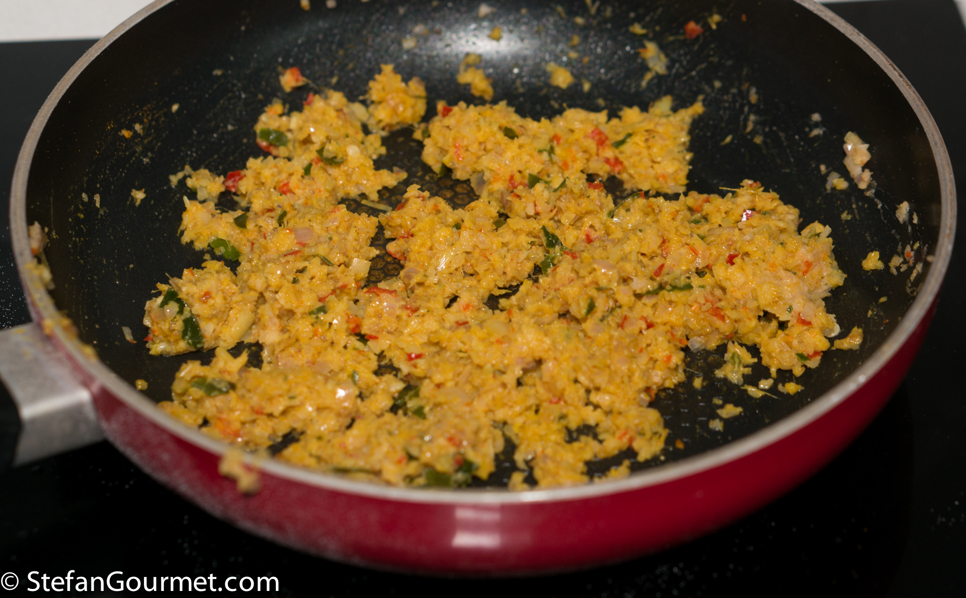 …and stir over medium heat for a minute or so. Then add 1/2 tsp ground coriander and 1/4 tsp ground turmeric…
