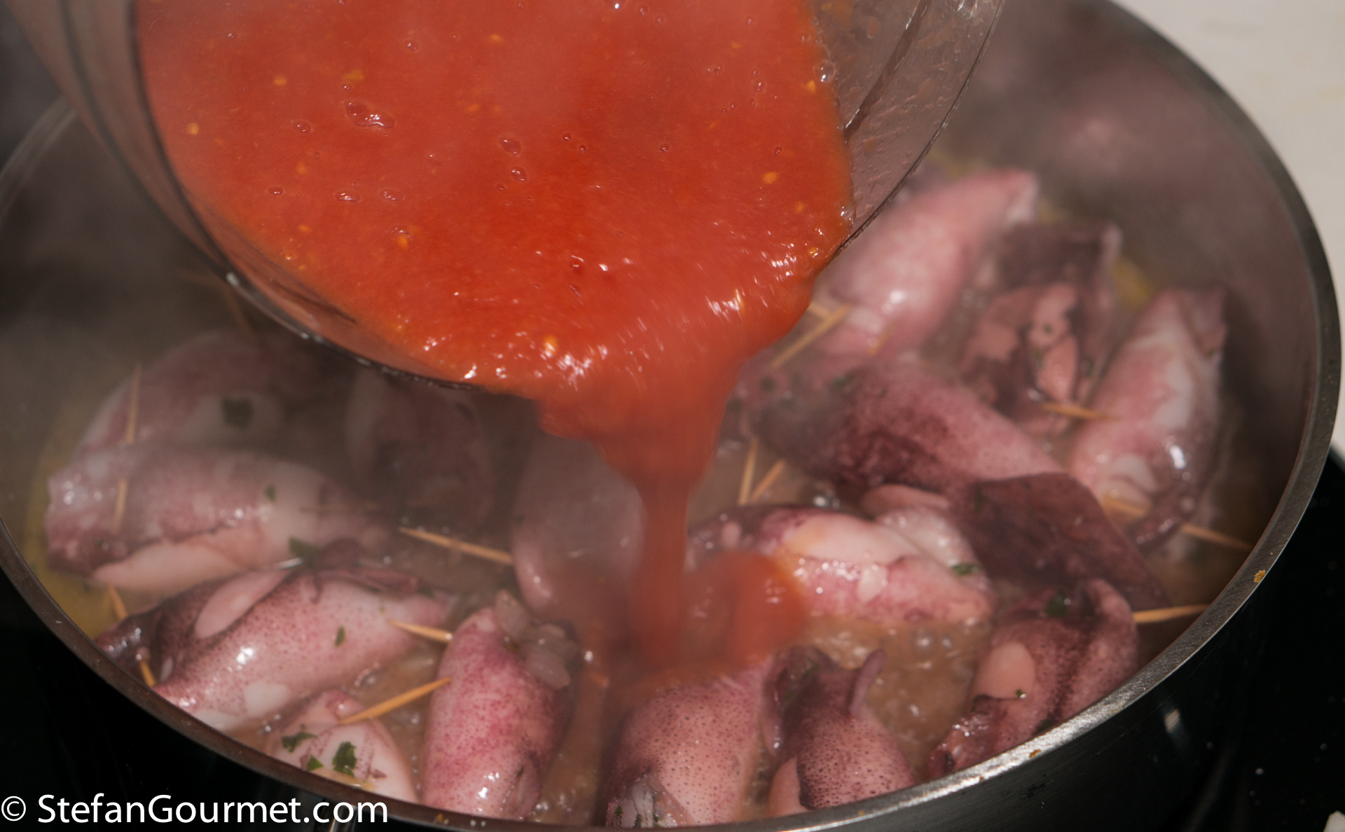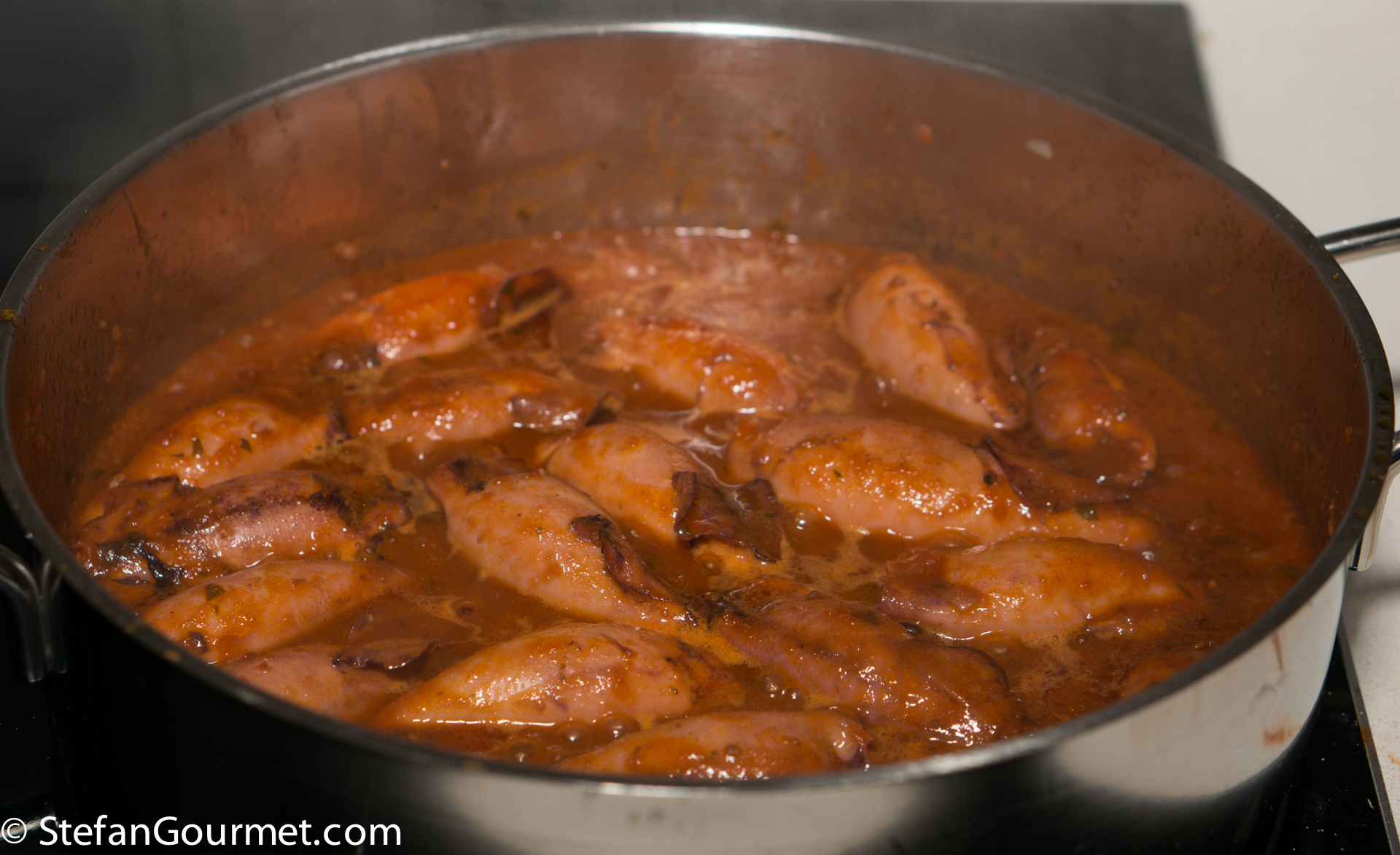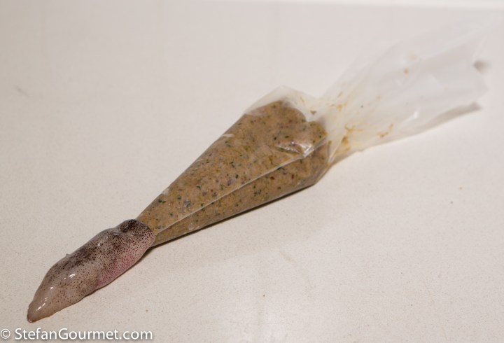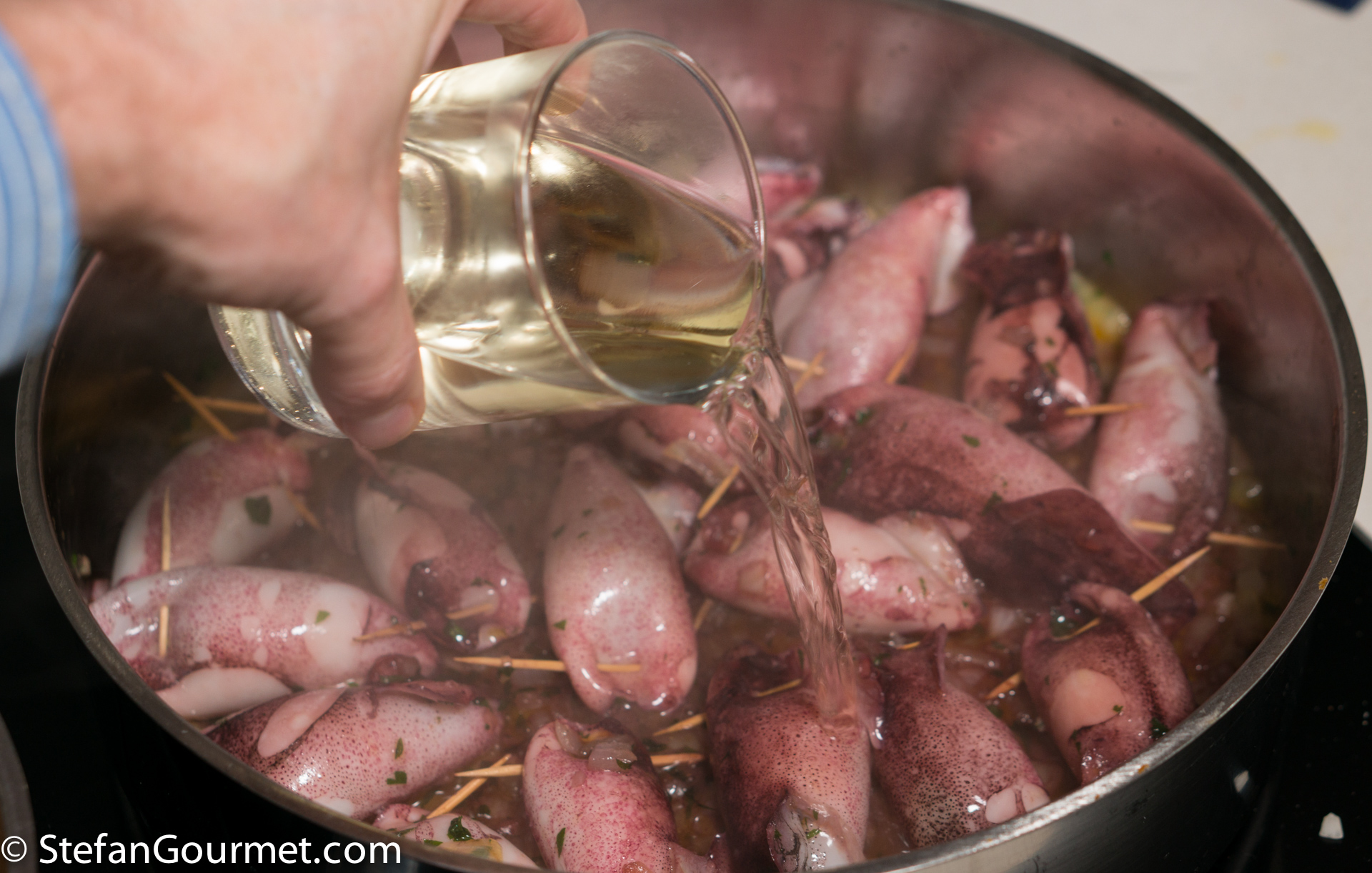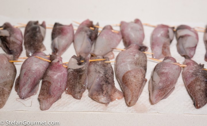 Keep going until you have stuffed all of them. You can prepare everything up to this point in advance and refrigerate the stuffed squid.
