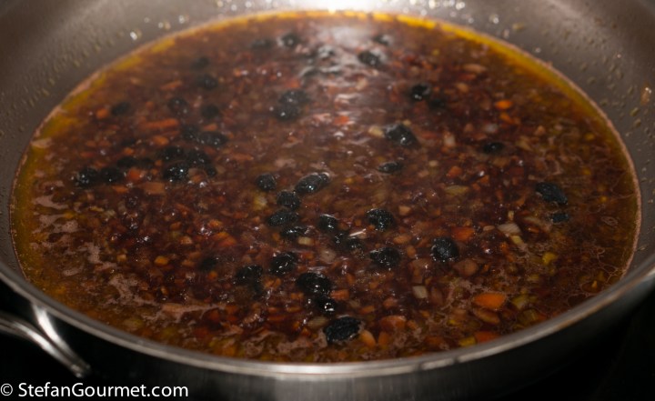 Add the juices that leaked out of the browned meat to the sauce as well. (If you still believe that browning meat will “seal in the juices”, here is your proof that it doesn’t. We only brown the meat to give it more flavor.)
