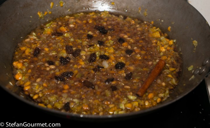 Add a tablespoon of raisins, 2 cloves, and a stick of cinnamon.