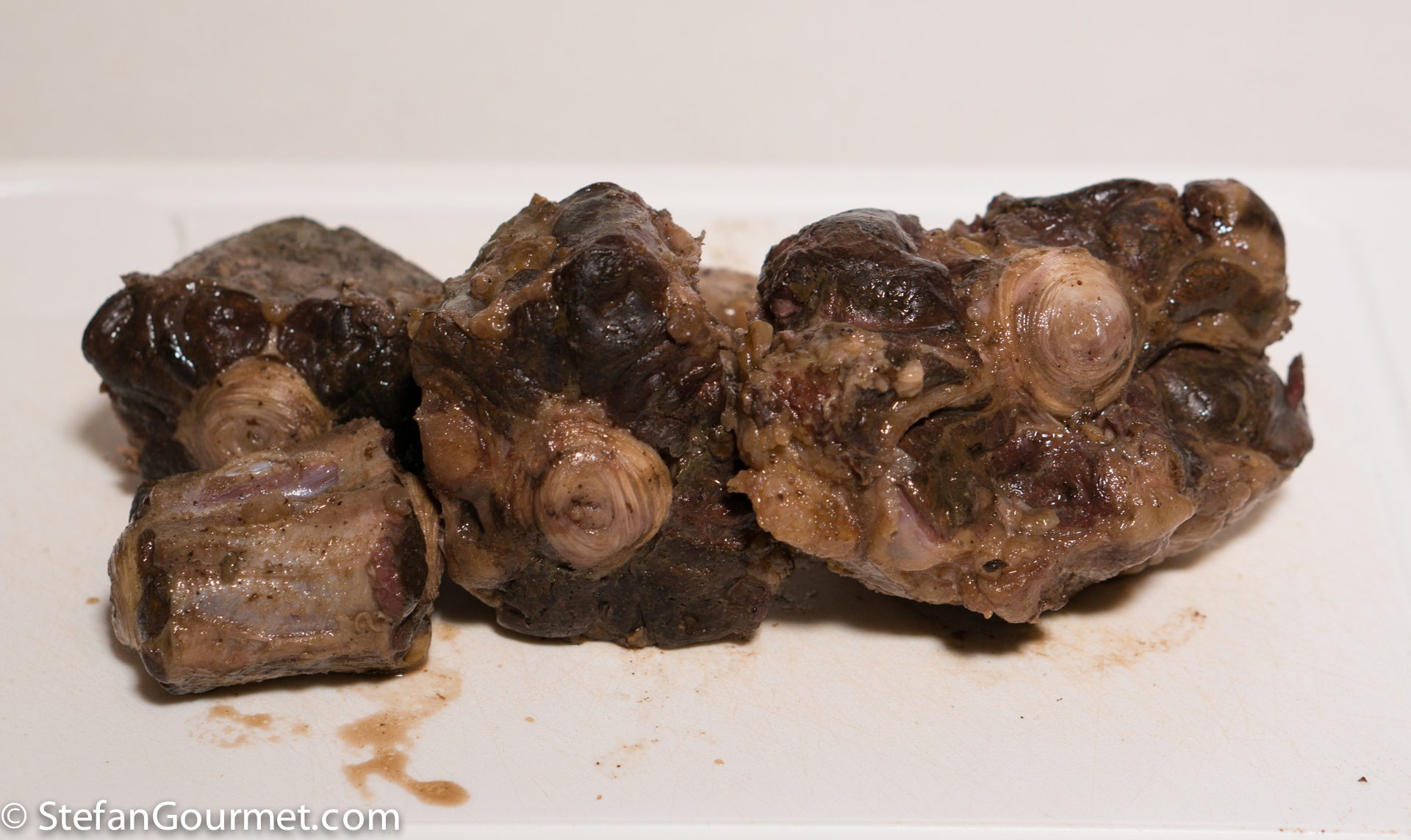 Good to see that oxtails look like ours on the other side of the world 🙂 The additions are typical of the traditional dish from Rome. Some add dark chocolate as well!