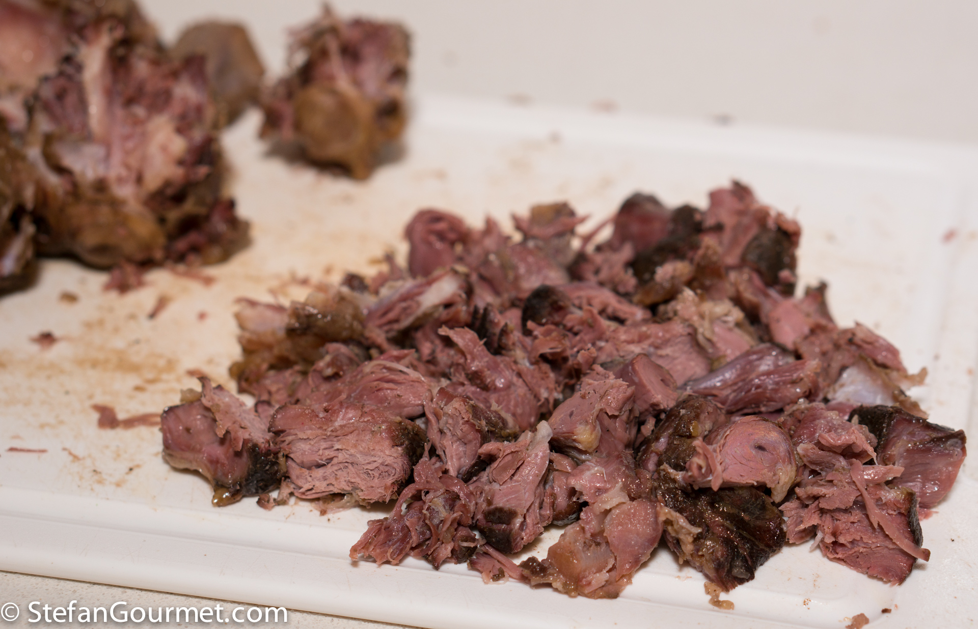 About 600 grams (1.3 lbs) oxtail, cooked sous-vide for 100 hours at 60C/140F