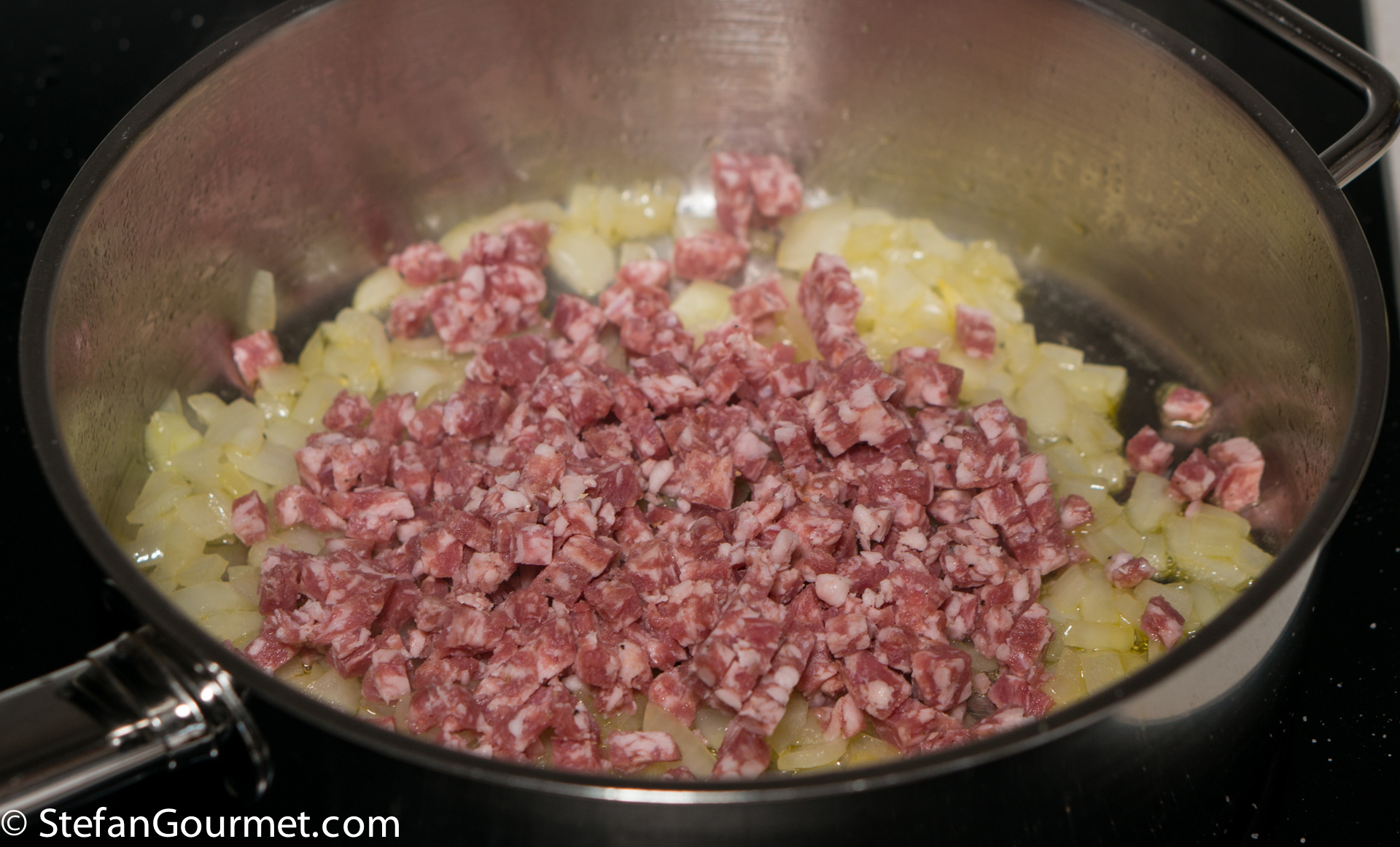 150 grams (.33 lb) neutral Italian sausage (salsiccia), taken out of its casings and chopped