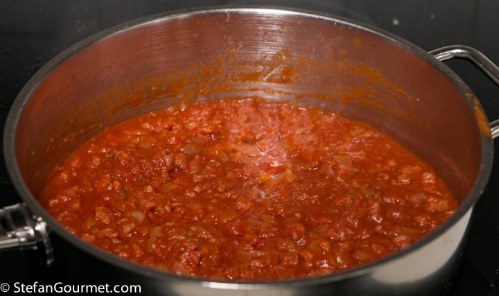 Simmer over low heat until the ragù has thickened, about 30 minutes. Taste and adjust the seasoning with salt and freshly ground black pepper.