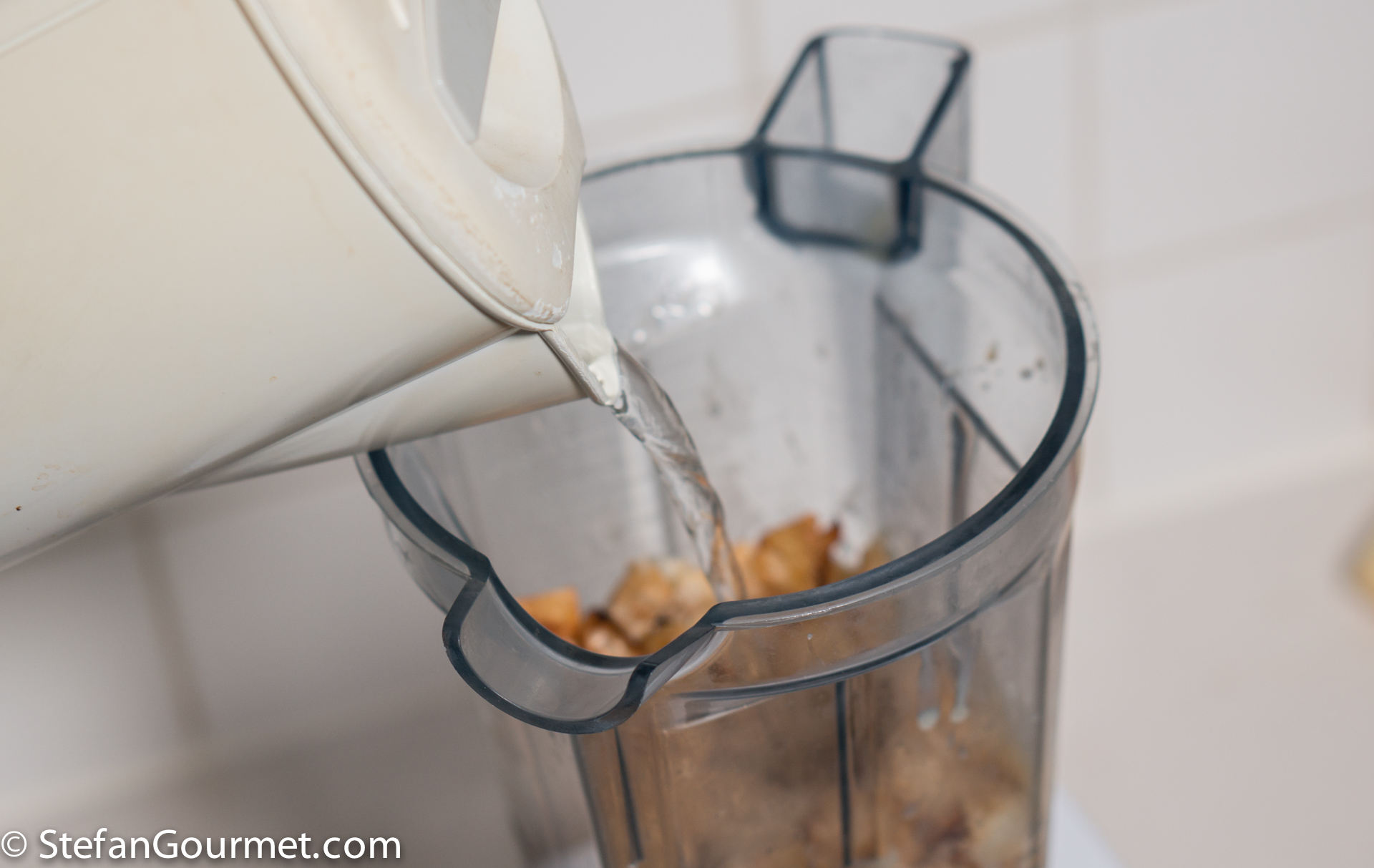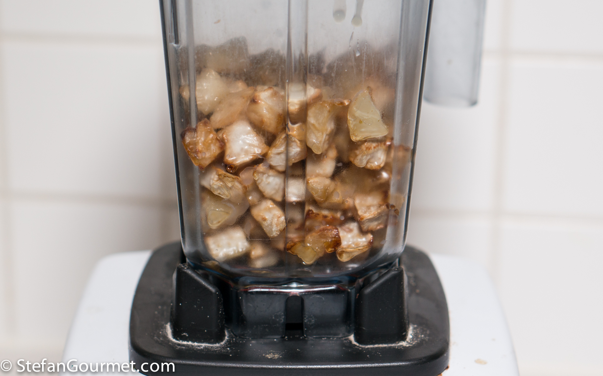 Put the celeriac in a blender together with all of the juices from the oven dish, including the fat.