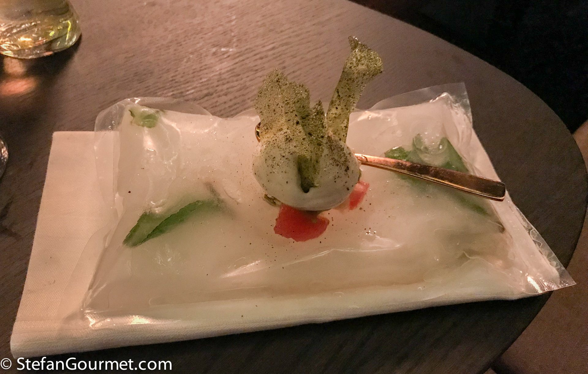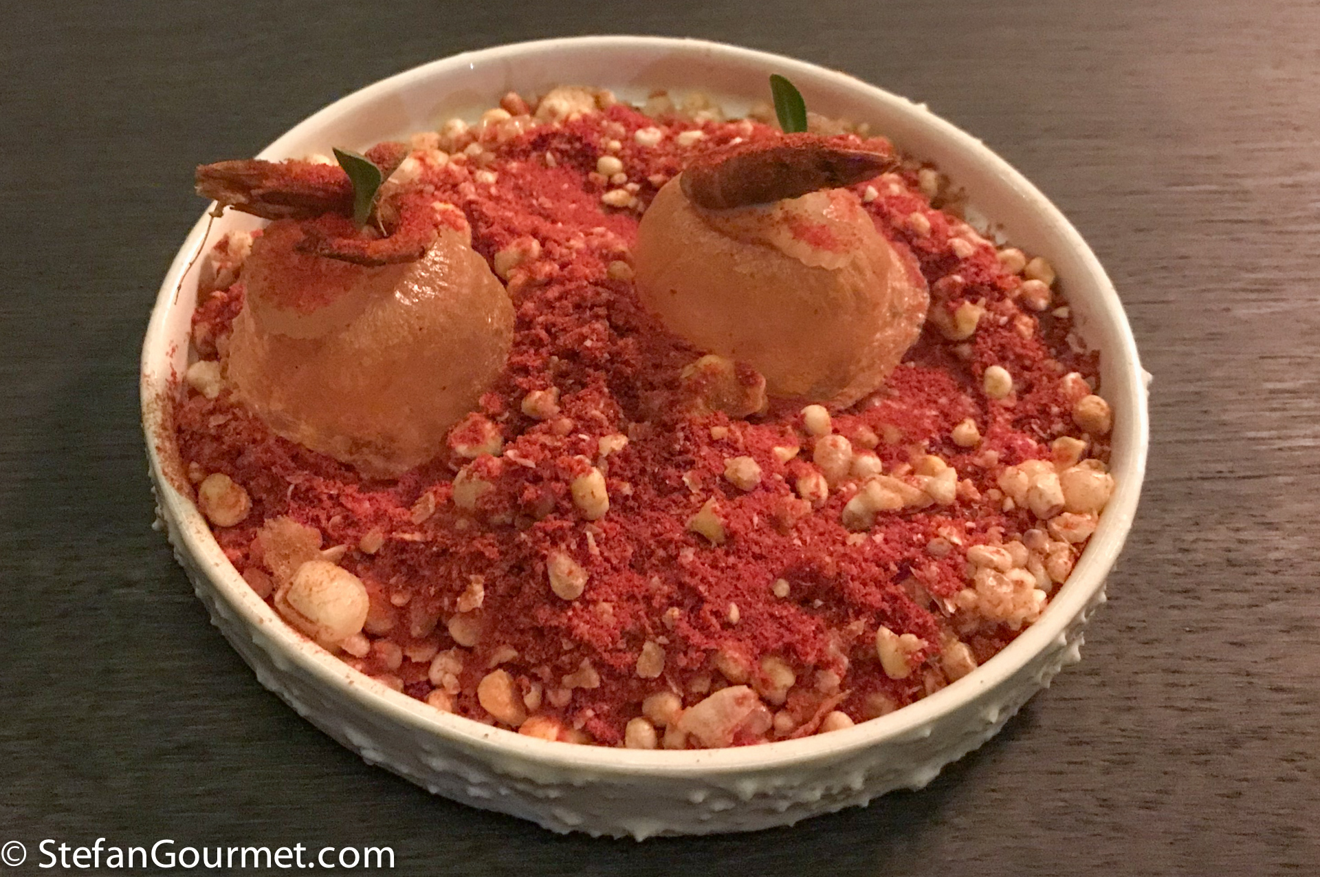 The amuse bouche started off with a crispy shrimp, served on a very thin shrimp cracker.