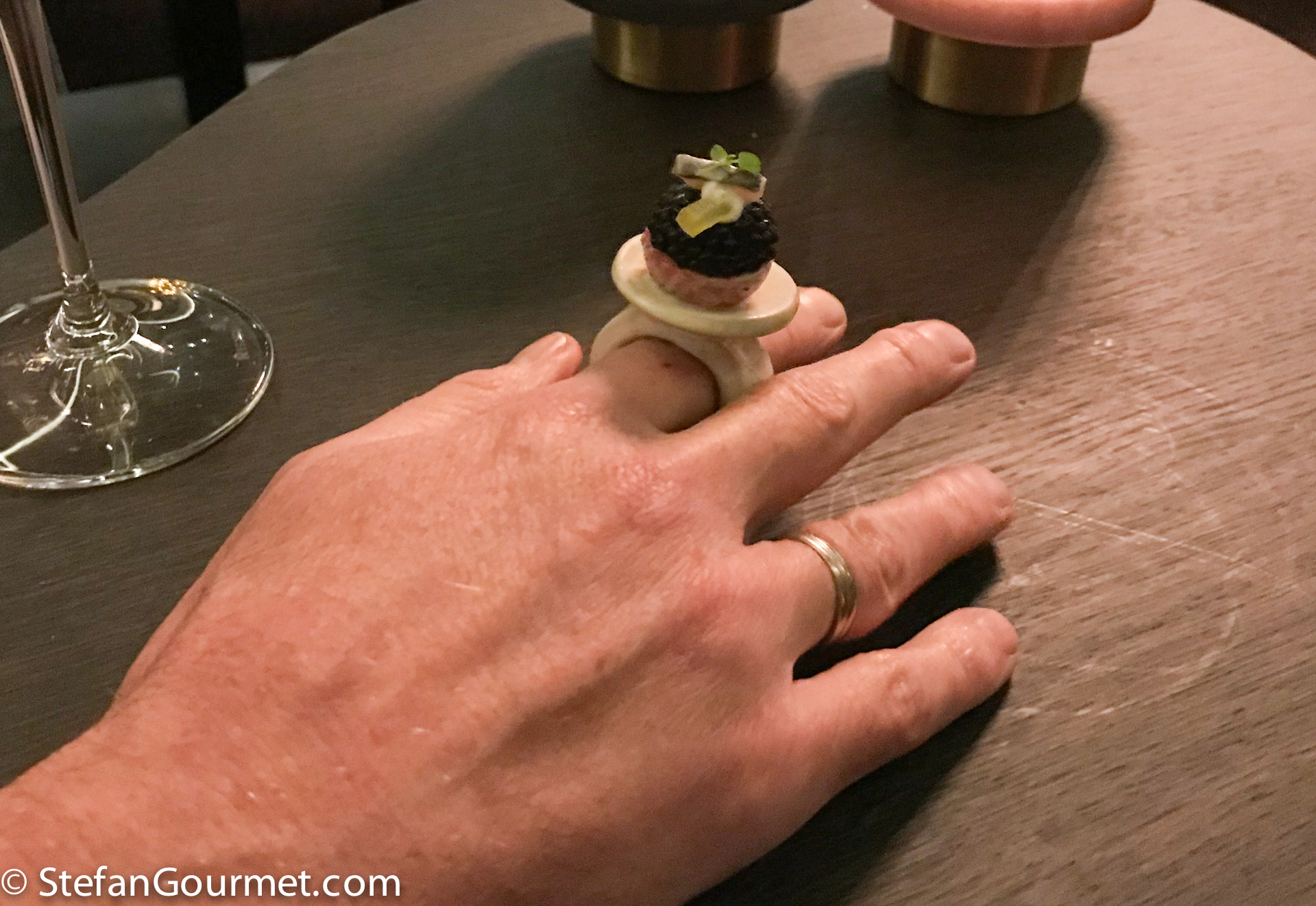 ‘Friendship ring’ with veal tartare, herring roe, and pickled herring.