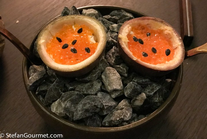 ‘Passion fruit’ with trout roe. A great series of amuse bouche.