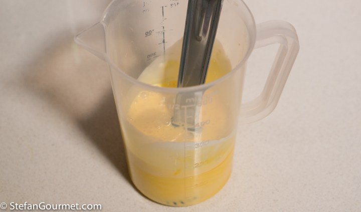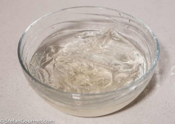 Soak 6 grams of gelatin in cold water. (Gelatin comes in sheets here. I do not have experience with powdered gelatin, so follow package instructions for that.)