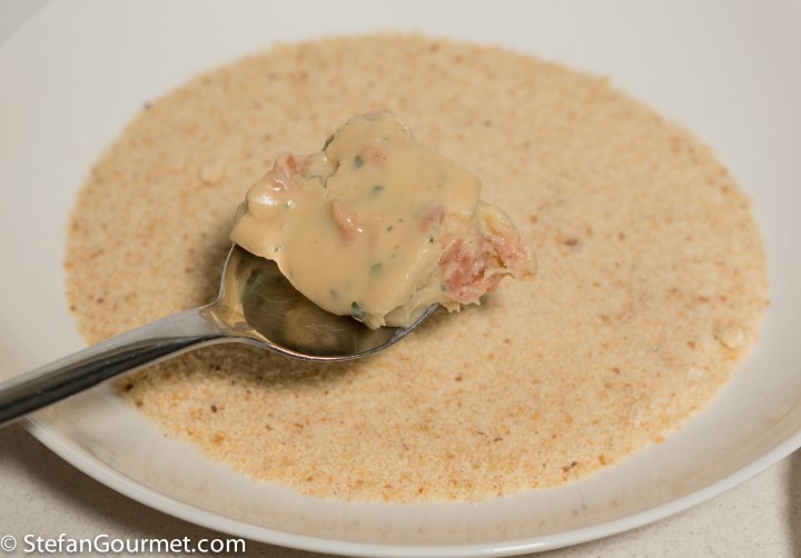 Take each portion of ragoût using a tablespoon, and roll it into a ball (or croquette) in fine breadcrumbs.
