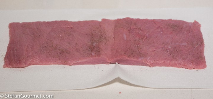Season the veal with salt and freshly ground black pepper on both sides.