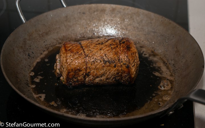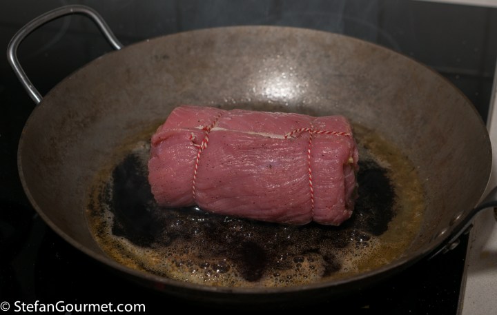…until it has a nice crust on all sides. Take the meat out of the pan.