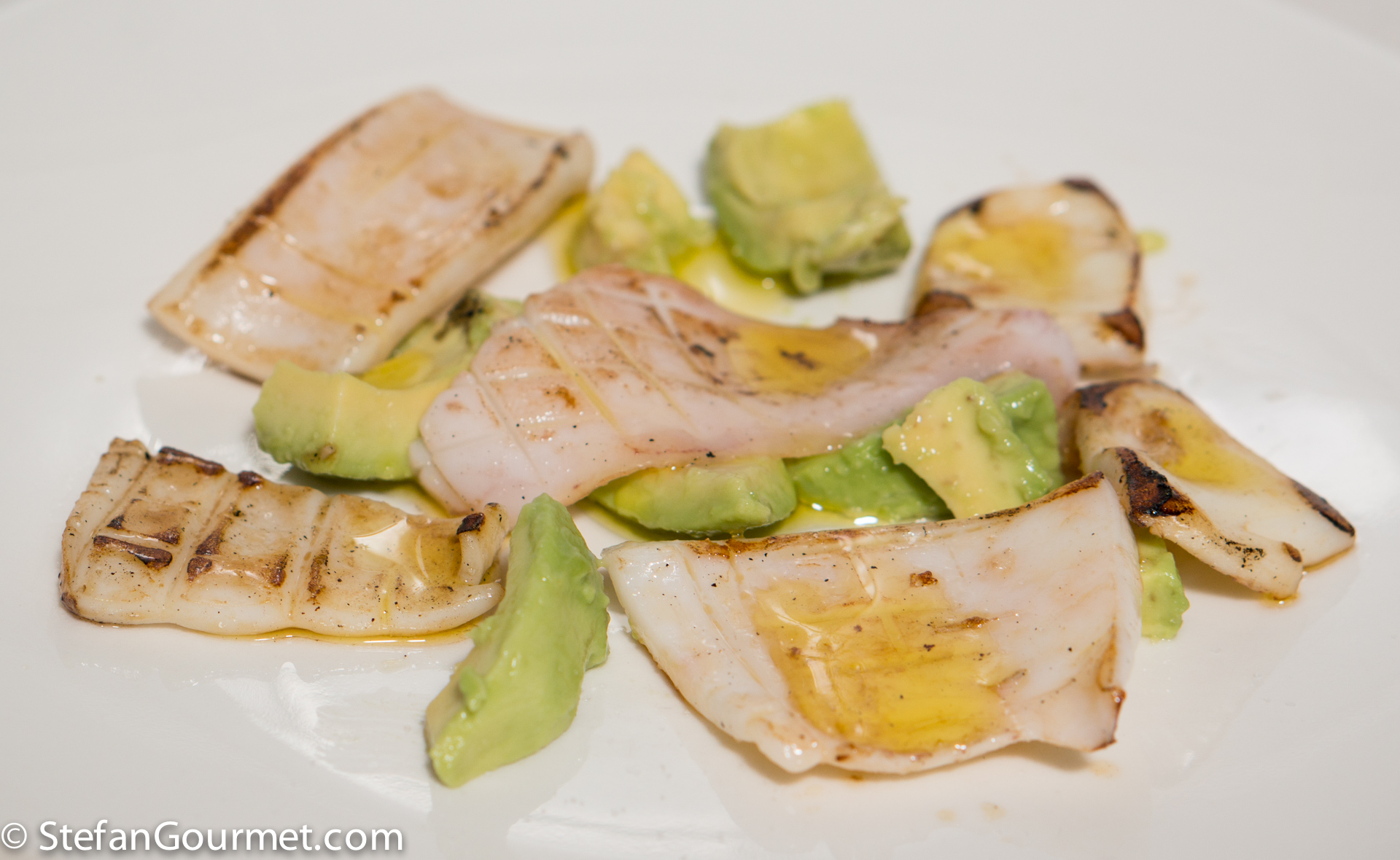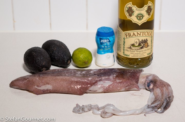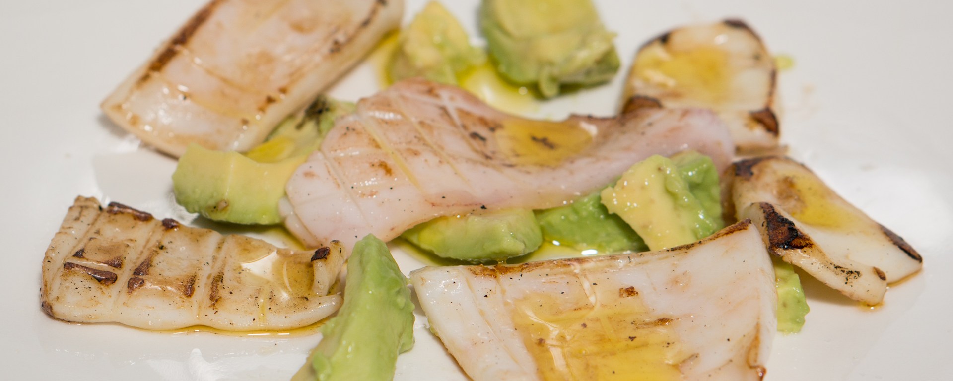 Serve the squid with the avocado, drizzled with your best extra virgin olive oil.