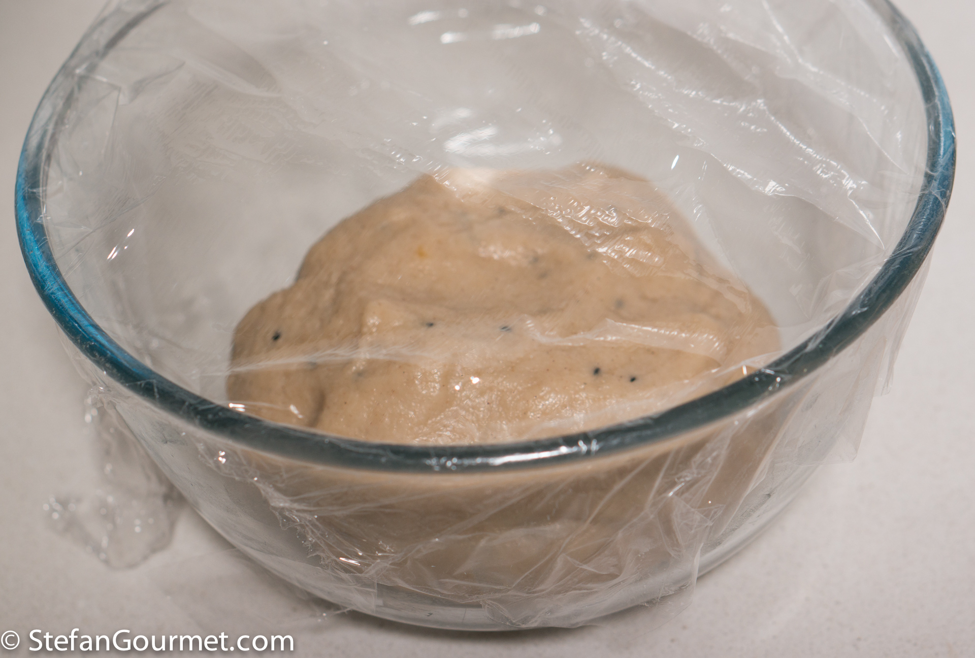 Place the dough in a bowl and cover. Allow to rest for an hour. Due to the small amount of yeast, it won’t rise very much.