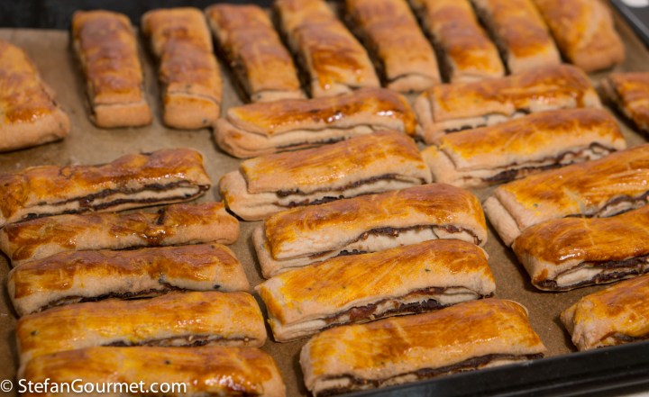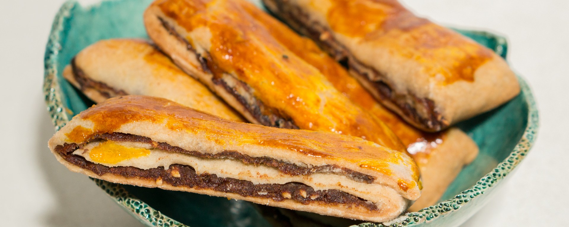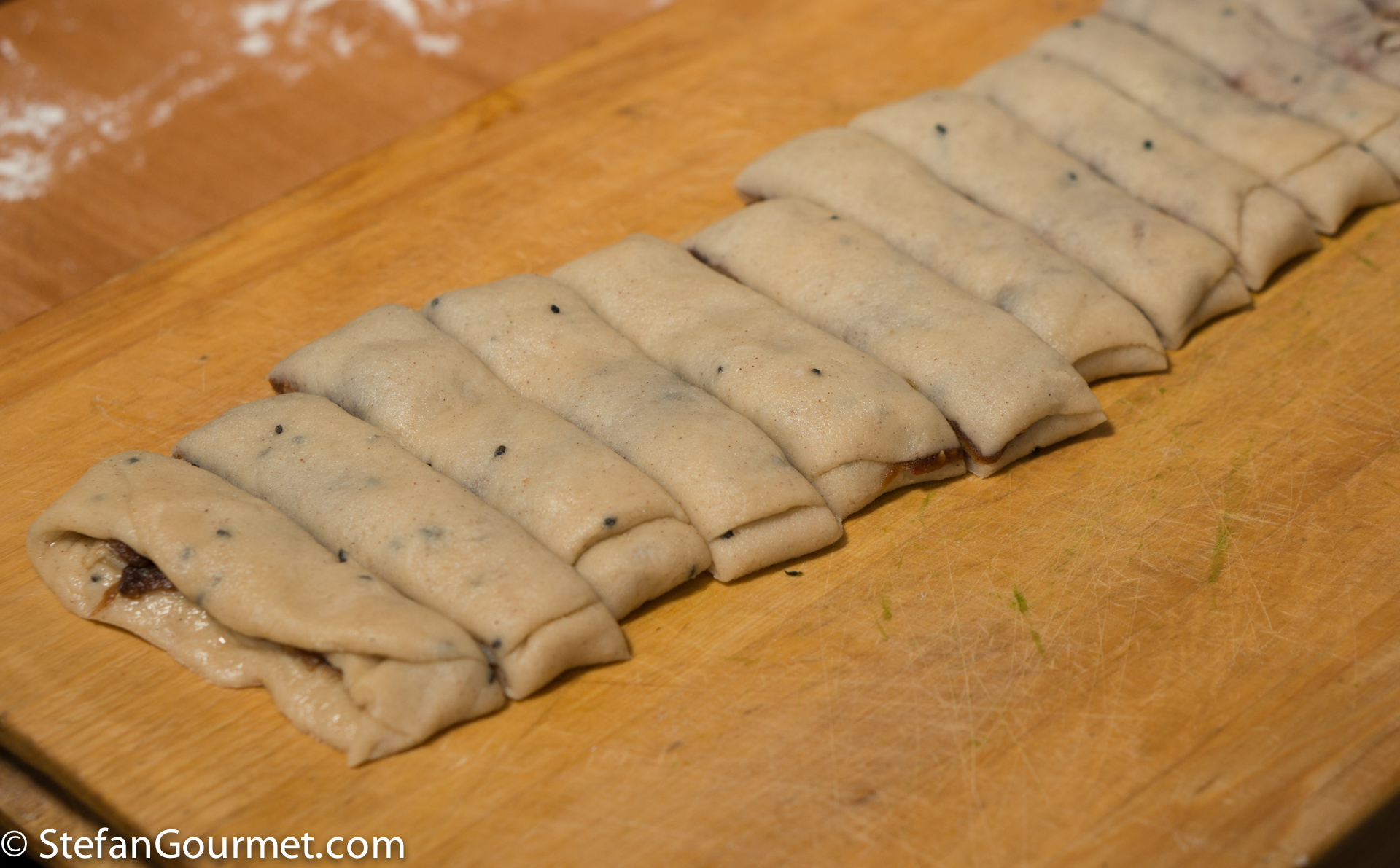 Cut this into 12 cookies of 2.5 cm (1 inch) wide. Repeat with the other half of the dough and the other half of the date filling.