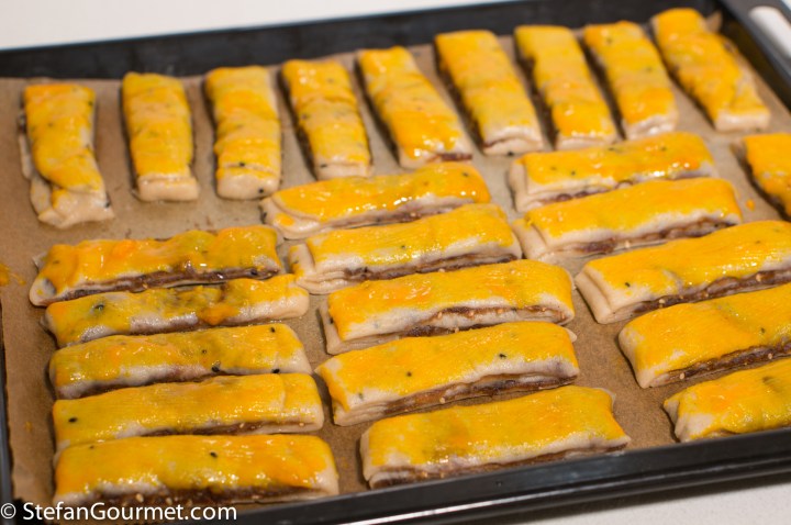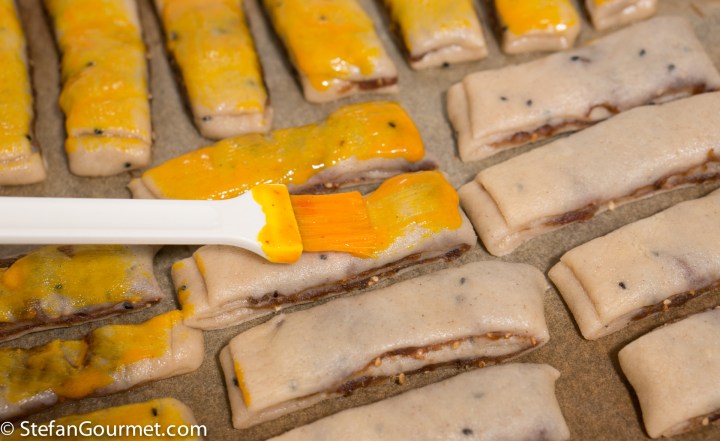 Preheat the oven to 200C/400F. Arrange the cookies on a baking sheet covered with oven paper. Brush the tops of the cookies with the egg yolk mixture. (Darya says to bake them for a bit first, but I thought it was easier this way.)