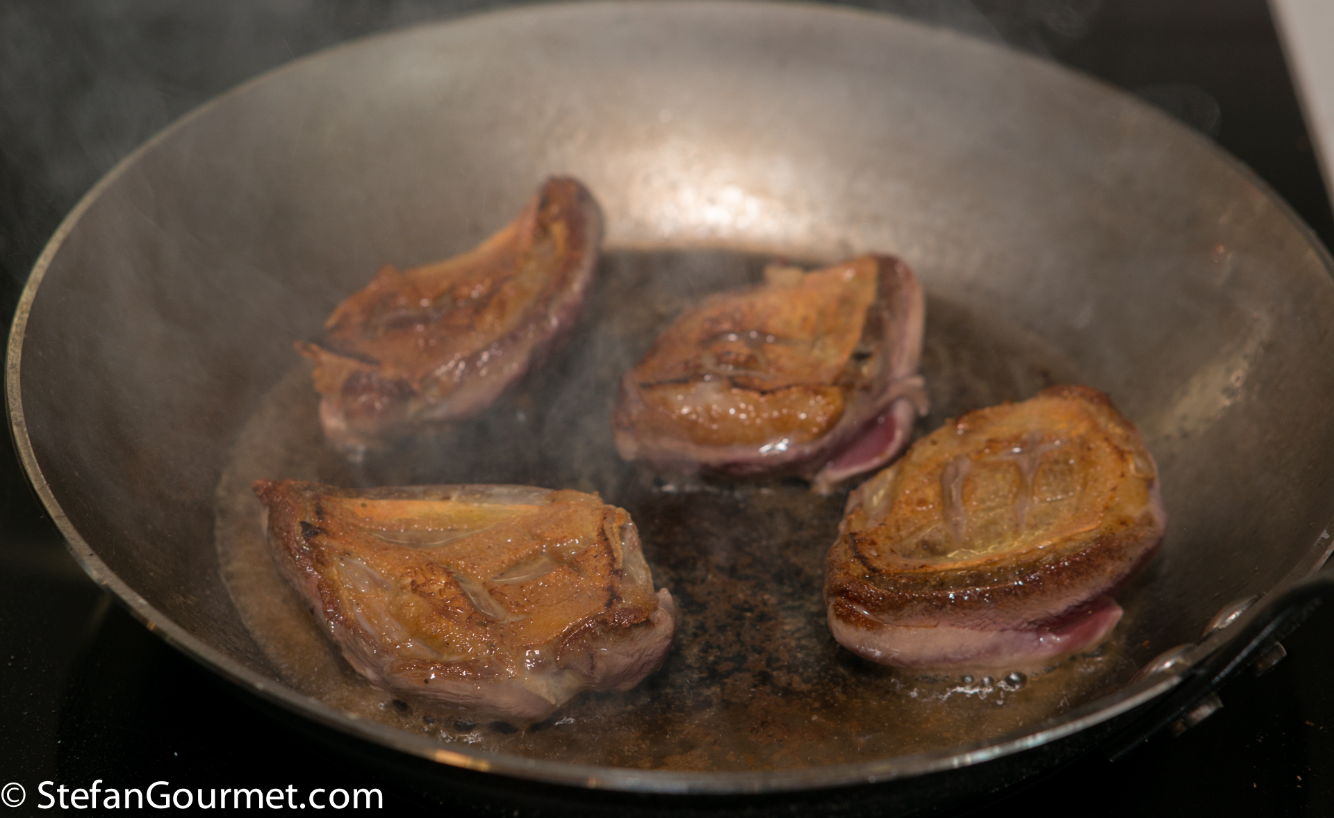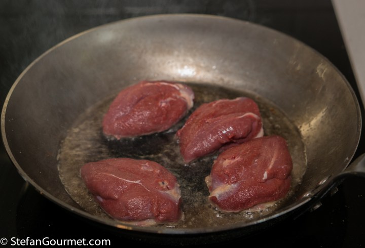 Cook the breast fillets over high heat on the skin side until the skin is golden brown.