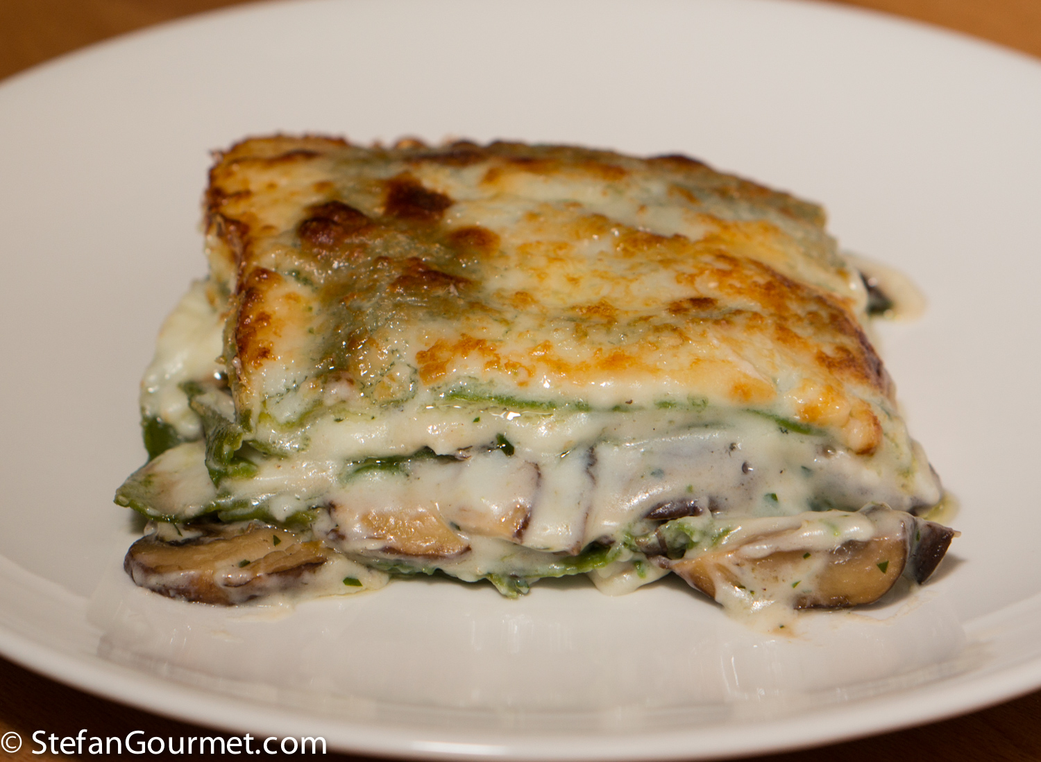 Mushroom lasagna is a classic I’ve been making for years. It is a great dish to indulge, rich yet elegant. Its components are fresh homemade spinach pasta, funghi trifolati (mushrooms sautéed in olive oil with garlic and parsley), white sauce, and plenty of parmigiano.