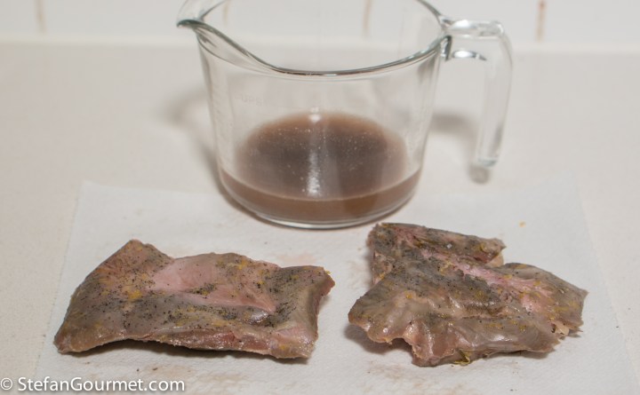 Cut the bag open, take out the turkey, and reserve the juices. I removed the rosemary, but you could decide to leave it on. Pat the turkey dry with paper towels.