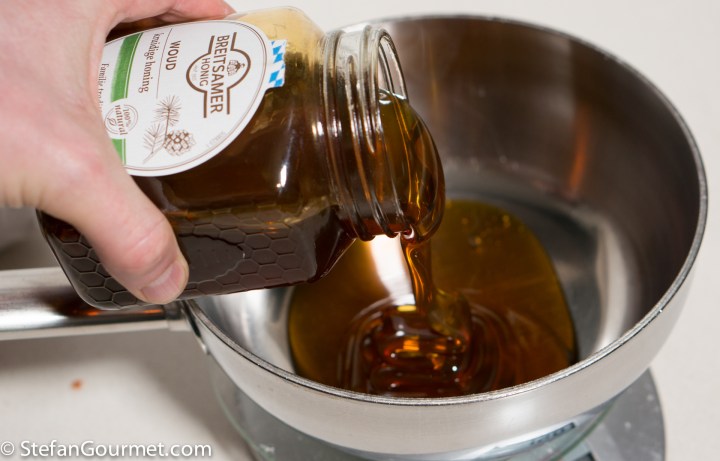 Pour the honey into a saucepan.