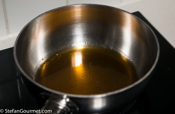 Heat the honey over low heat until it is more fluid.