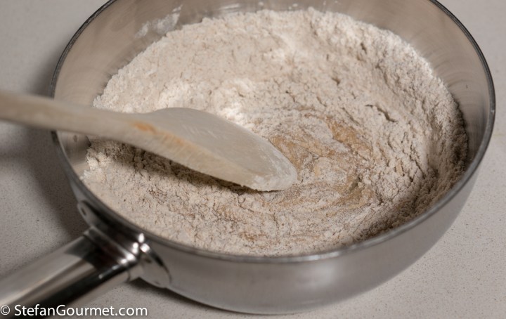 Take off the heat. Add sifted flour and rye flour.