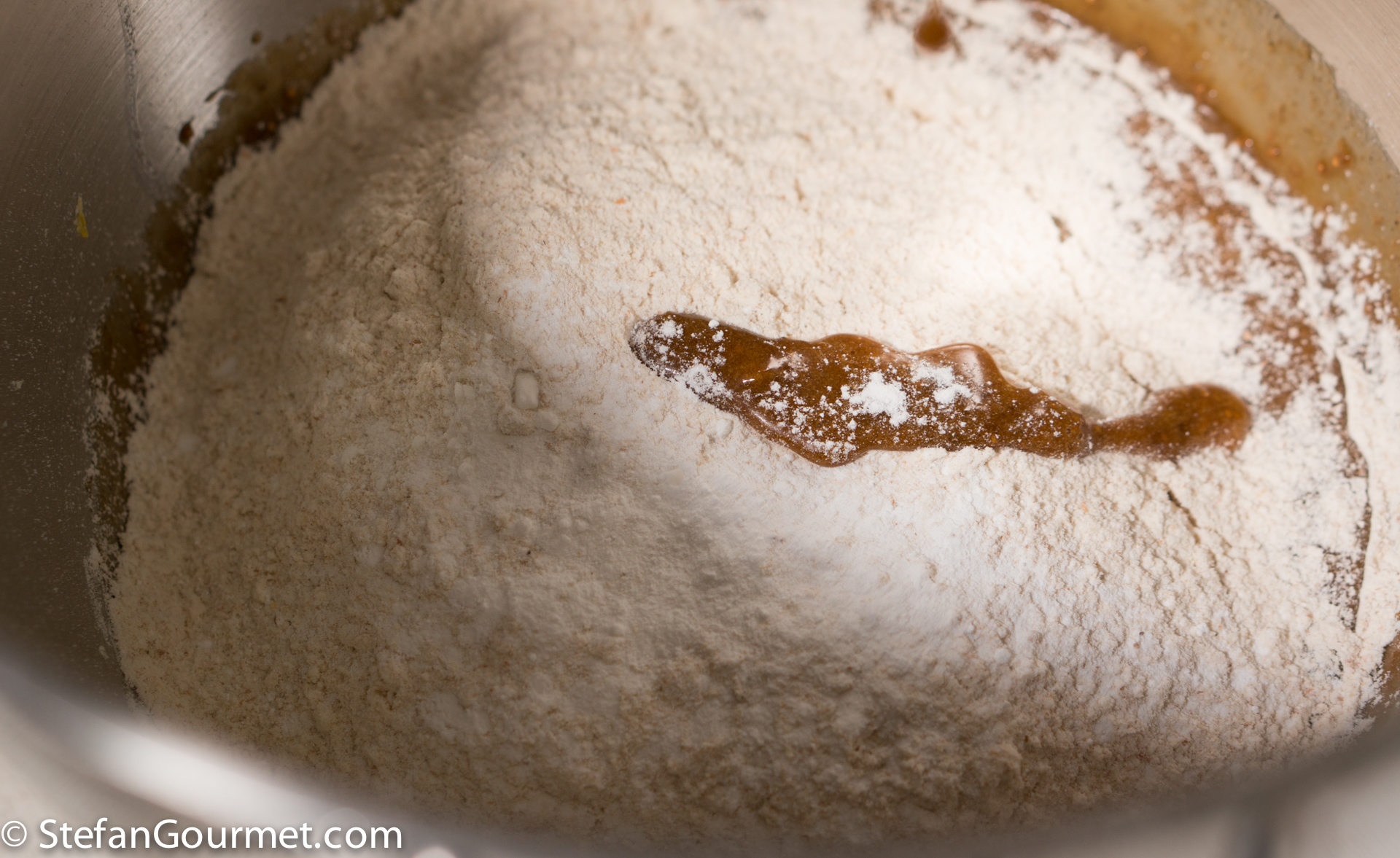 Add the honey and flour dough from day 1, broken into pieces.