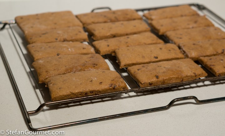 Allow to cool on a wire rack. The cookies will keep for a long time in an airtight container at room temperature. To avoid them to get stuck together, put pieces of oven paper in between the layers of cookies.