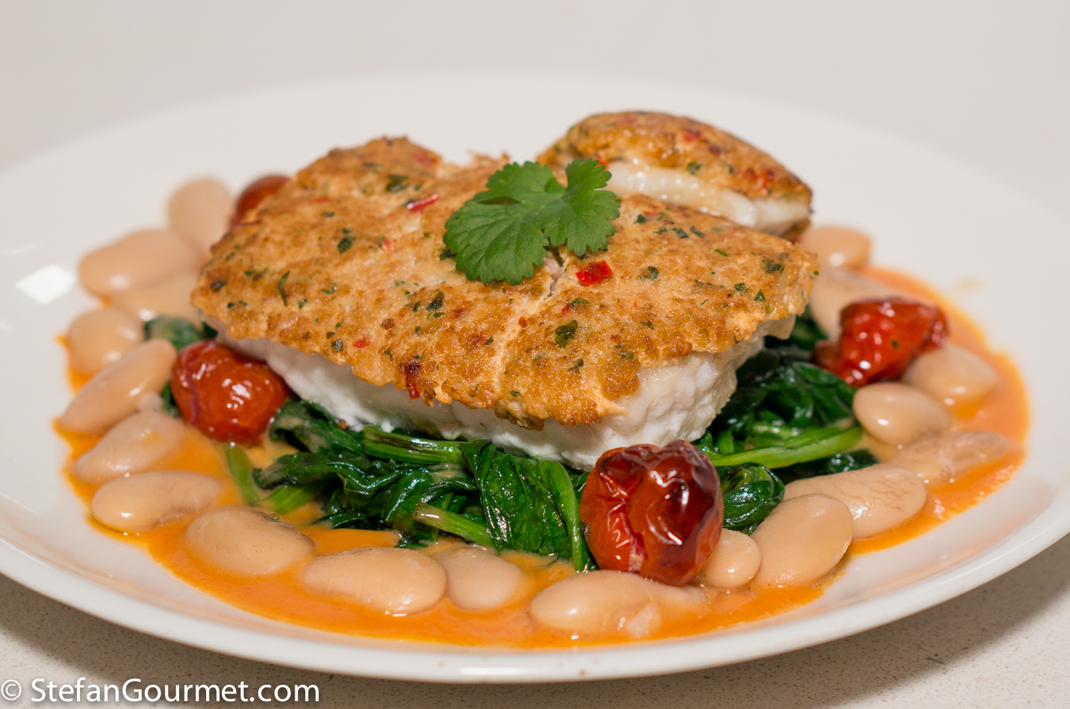 Shrimp-Crusted Grouper with Spinach and Butter Beans is a dish that was inspired by something I had on Ocean Drive in Miami Beach at A Fish Called Avalon.