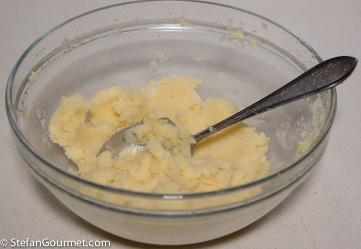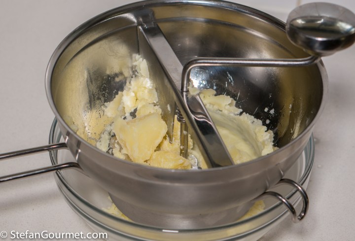 When I posted the recipe for Sauerbraten recently, I promised I would also share the recipe to prepare the accompanying large potato dumplings called Klöße (singular Kloß). Kartoffel is German for potato. There are many variations of the recipe. The ones I made are much bigger and more creamy than their Italian cousins, potato gnocchi, because they are enriched with butter and egg yolk. They are a festive alternative for regular boiled potatoes with dishes that come with a lot of sauce, like Sauerbraten.
