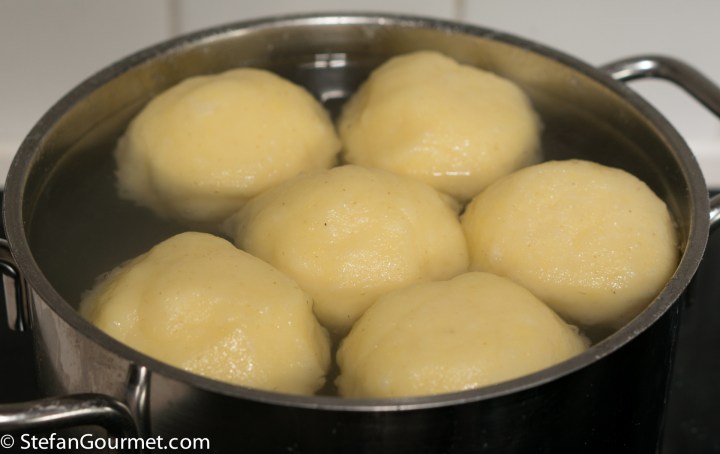 Just cannot believe one egg yolk and a Tb of butter was all it took : must the most ‘saftig’ Klõsse I have ever seen ! I’d want three on a plate too . . . . 🙂 !