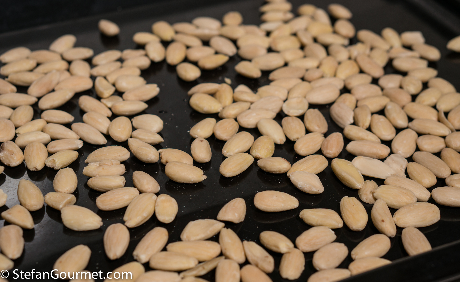 …until they are lightly toasted, about 8 minutes. Allow the almonds to cool after toasting.